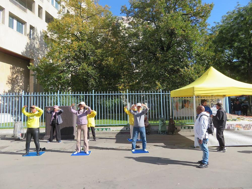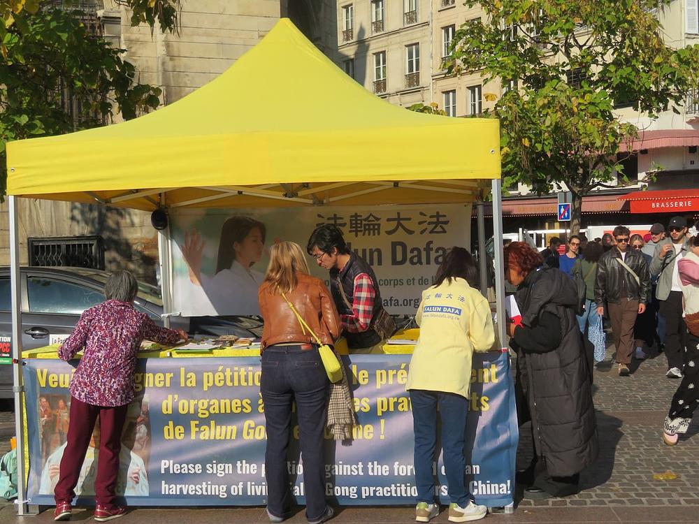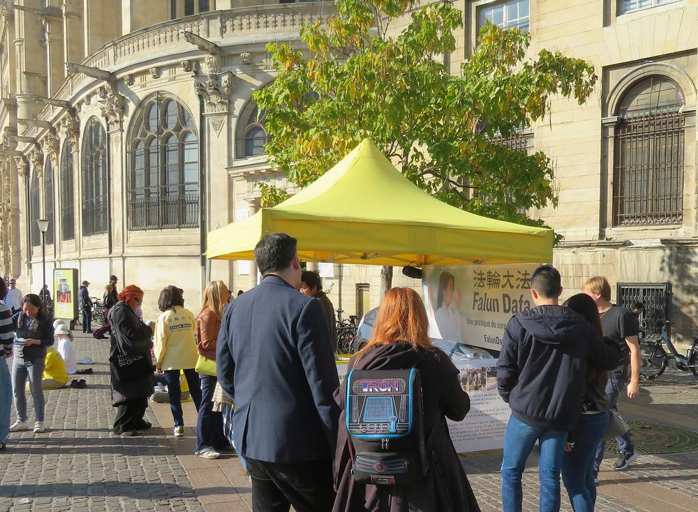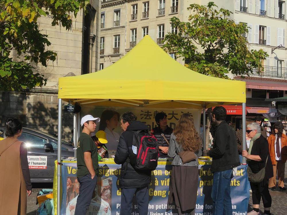 Demonstrirali su vježbe tijekom događaja u Chateletu 11. listopada, uz veliki interes. Prolaznici su izrazili želju za učenjem i zabilježili su detalje o vježbalištu u Parizu. Transparenti i izložbene ploče praktikanata privukli su pažnju javnosti. Prolaznici su se informirali o praksi i o prisilnom vađenju organa od zatvorenika savjesti u Kini, čin koji odobrava država koja je pod vodstvom KPK. Većina zatvorenika savjesti u Kini su praktikanti Falun Dafa. Prolaznici su izrazili svoj gnjev povodom takve situacije i potpisali peticiju kojom se poziva na prekid progona.