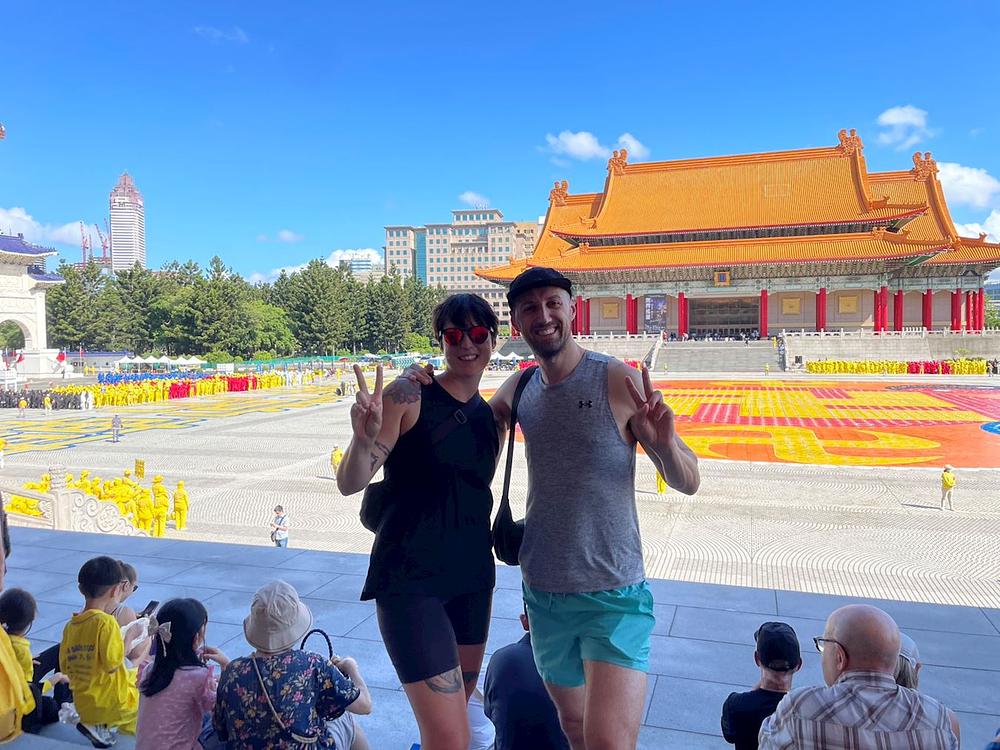 Par iz Italije vidio je formiranje znakova na svoj prvi dan na Tajvanu. Bili su iznenađeni i mislili su da su sretni. Praktikant im je rekao da posjete web stranicu kako bi pročitali uvod o praksi i postali su zainteresirani. Također su mislili da je neshvatljivo da se toliko ljudi progoni zbog toga u Kini. „Tako dobra grupa ljudi, a ipak ne mogu ovo prakticirati u Kini, KPK je tako nepravedna prema praktikantima Falun Gonga.“