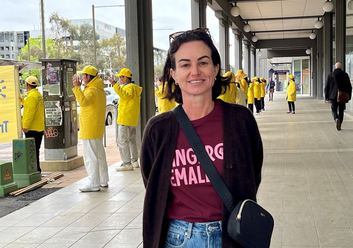 Holly, aktivistica za ljudska prava sa Sjeverne teritorije Australije, je kazala da je vidjela praktikante kako podižu svijest u centru Canberre ujutro 29. oktobra i zaustavila se da sazna više informacija. Potpisala je peticiju za suprotstavljanje progonu.