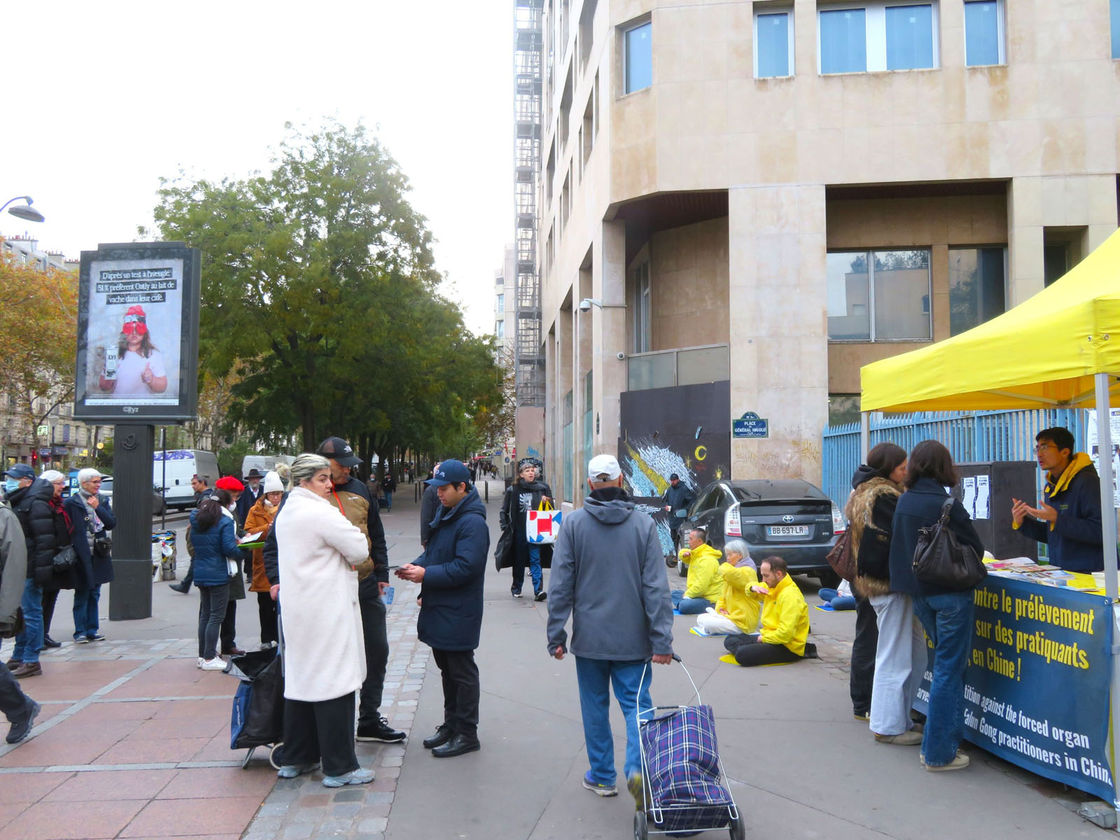 11. novembar je državni praznik u Francuskoj. Praktikanti Falun Dafe su se okupili u Belvilu, demonstrirali vežbe i razgovarali sa prolaznicima o duhovnoj praksi i progonu od strane KPK. Mnogi ljudi su potpisali peticiju kojom se poziva na zaustavljanje progona. Nekoliko Kineza se tokom događaja odreklo članstva u KPK i njenim omladinskim organizacijama.