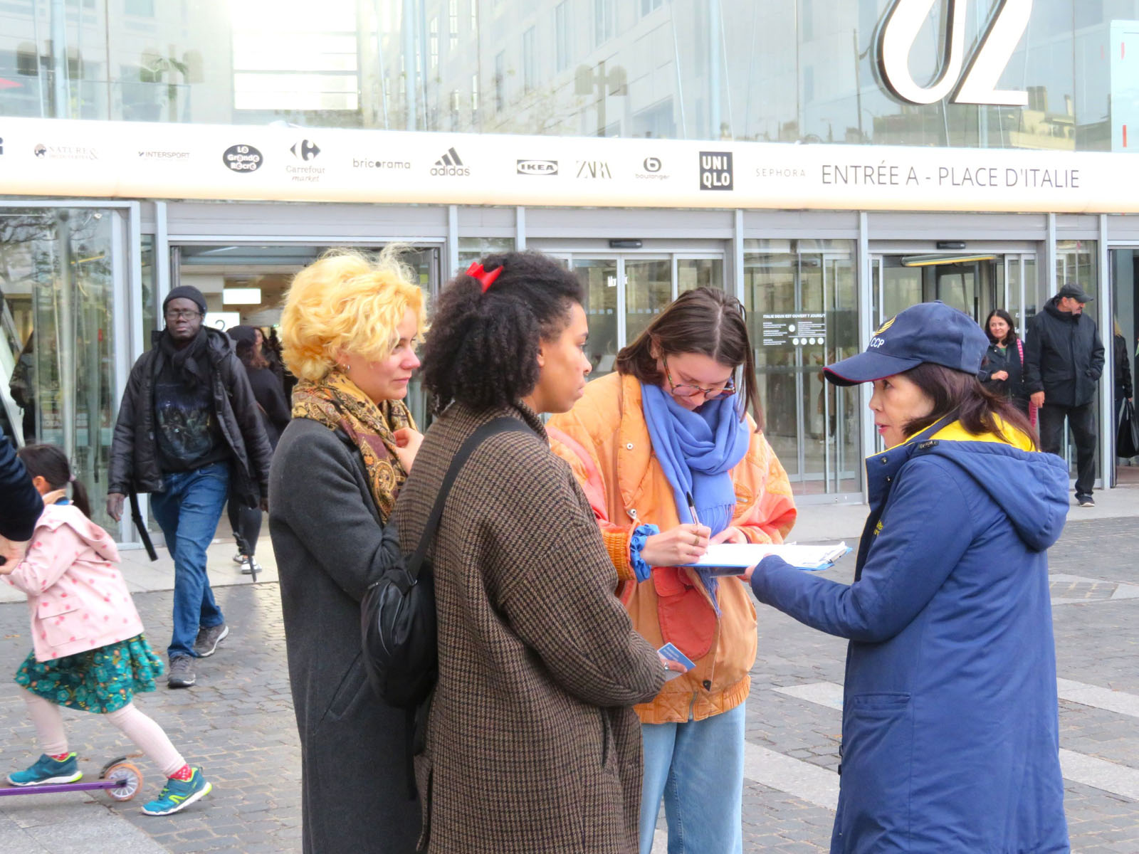 8. i 11. novembra 2025, praktikanti Falun Dafe održali su aktivnosti na Trgu Italije i u Belvilu, u Parizu, i u Kolmaru u istočnoj Francuskoj, da bi predstavili Falun Dafu (takođe poznatu kao Falun Gong) i podigli svest o progonu prakse od strane Komunističke partije Kine (KPK). Mnogi ljudi su razgovarali sa praktikantima i saznali za kršenja ljudskih prava koja se dešavaju u Kini.