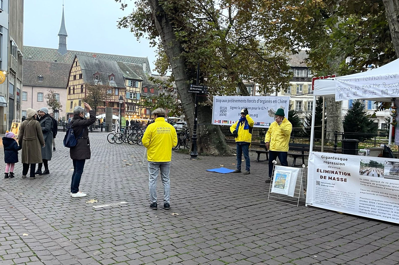 11.novembra 2025, praktikanti u istočnoj Francuskoj održali su aktivnosti u centru Kolmara. Lokalni stanovnici i turisti su saznali za Falun Dafu i mnogi su potpisali peticiju kojom se poziva na zaustavljanje prinudne žetve organa od strane KPK.