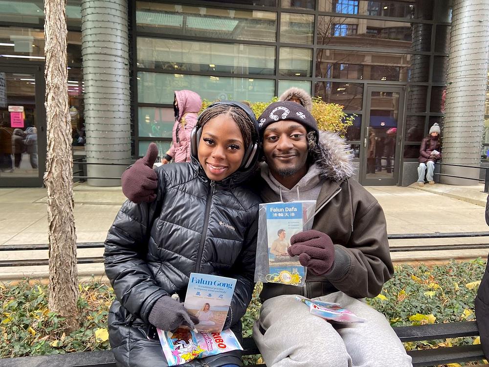 Stanovnici Čikaga, Gomez i njegova supruga Gabi, rekli su da su srećni što su saznali za Falun Dafu. Gabi je rekla: „Želela bih da saznam više o ovoj praksi.“ Bila je srećna što je videla kako Falun Dafa plovi. Rekla je: „Splav je prelep! Drago mi je što vas vidim ovde.“