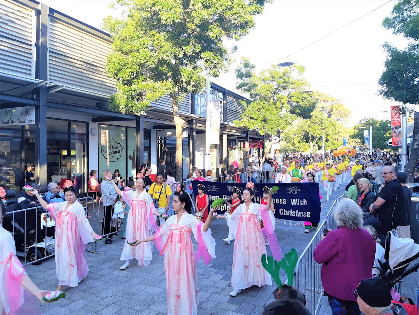 Nastup Falun Dafa grupe je uključivao nebeske vile, kineske dobošare i nastupe plesača sa zmajevima. Mnogi ljudi, koji su stajali duž rute kojom se parada kretala su ih bodrili, pljeskali, hvalili i snimali nastup praktikanata. Neki su čak plesali uz muziku i ritam bubnjeva. Ljudi su bili puni hvale za jarke boje i miroljubivu energiju praktikanata. Mnogi su se zahvalili praktikantima na učešću.