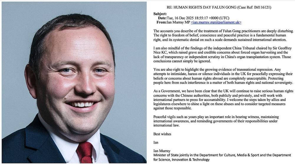 Britanski ministar, zastupnik Ian Murray, je izrazio zabrinutost zbog progona s kojim se suočavaju praktikanti Falun Gonga. On je izjavio: „Opisi načina na koji se tretiraju Falun Gong praktikanti koje ste iznijeli su duboko uznemirujući. Pravo na slobodu vjerovanja, savjesti i mirnog prakticiranja je temeljno ljudsko pravo, a njegovo sistematsko uskraćivanje u ovim razmjerima zahtijeva stalnu međunarodnu pažnju.