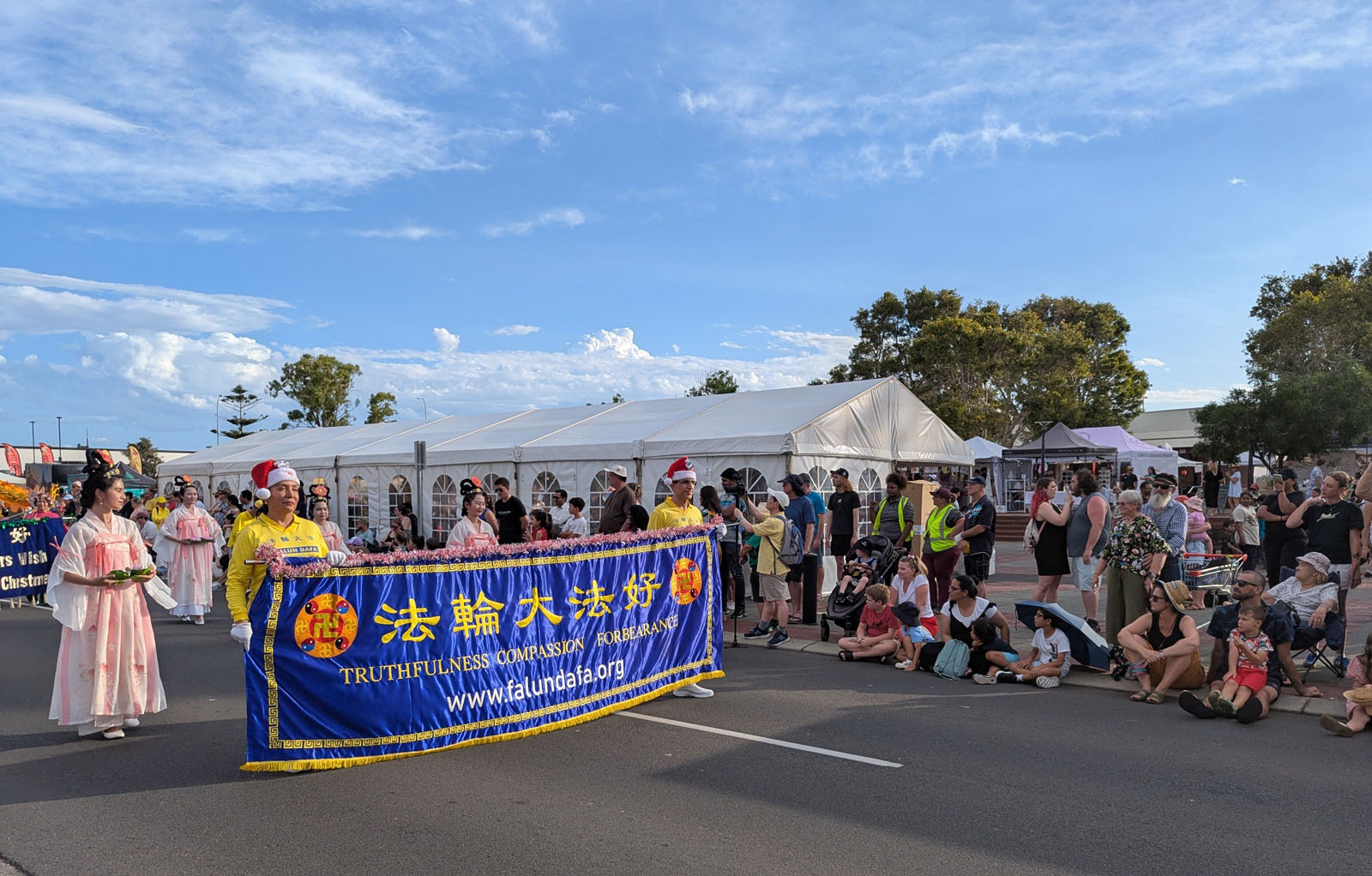 Falun Dafa praktikanti iz Zapadne Australije su učestvovali u dvije božićne parade krajem 2025. godine. Postavili su štand i učestvovali u paradi u Ellenbrooku 13. decembra. Sljedećeg dana pridružili su se paradi u Bunburyju, u kojoj su osvojili prvo mjesto u kategoriji Pješačka grupa.