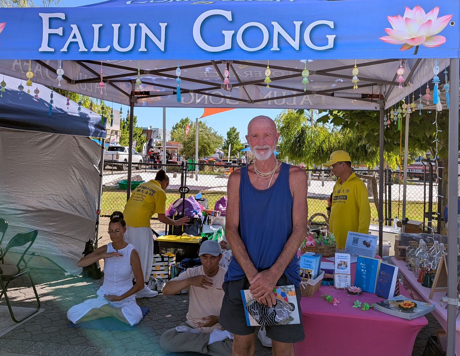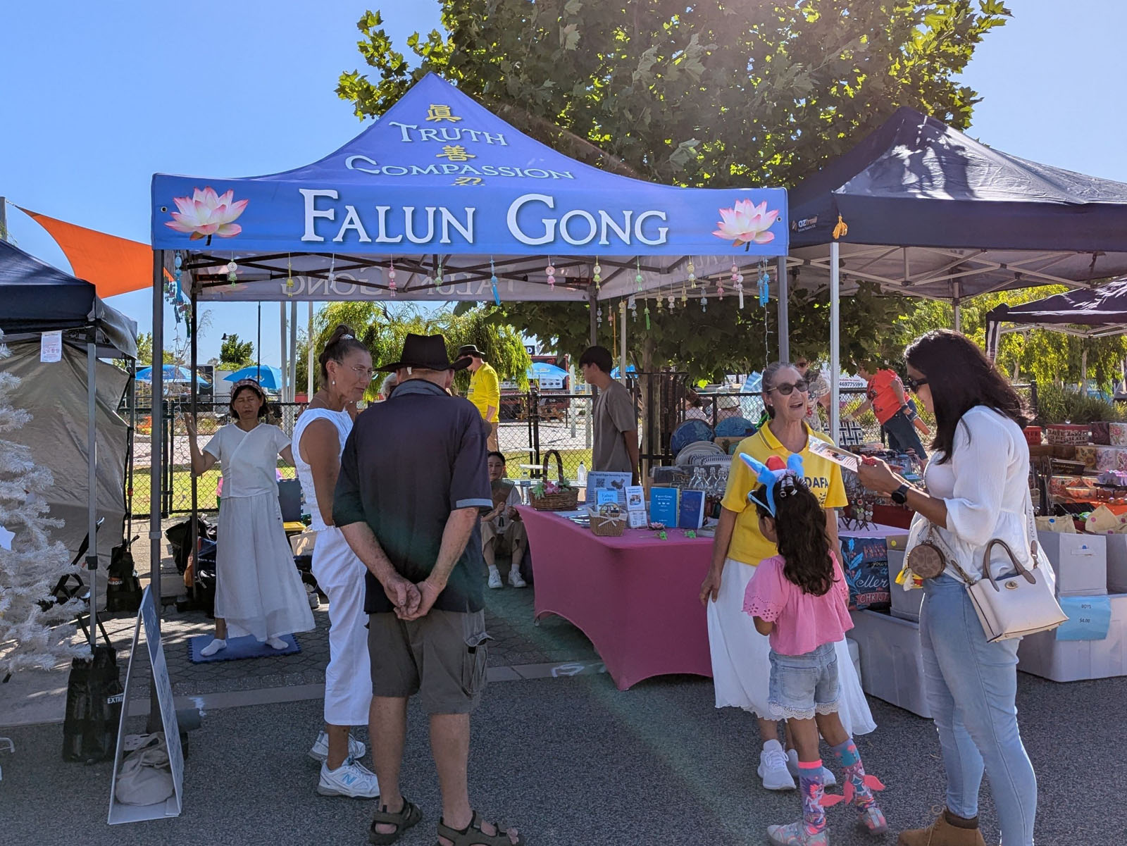 Gđa Sharon i gđa Simone su svratile do štanda jer je Sharon rekla da je ranije čula za Falun Dafa. Rekla je „Željela sam svratiti da vam se javim jer znam za istoriju Falun Dafa“.