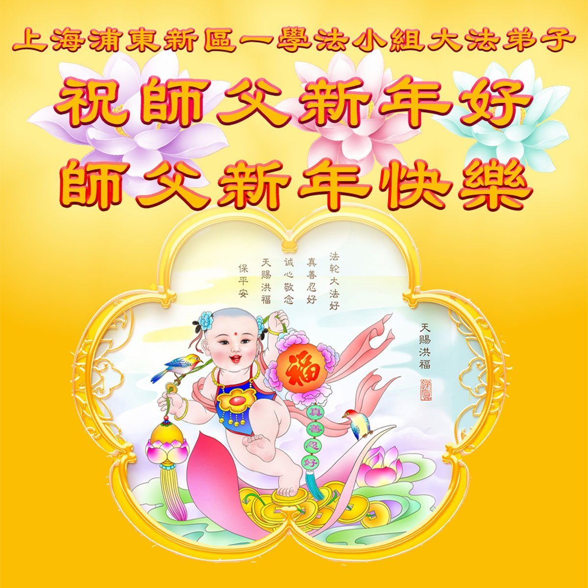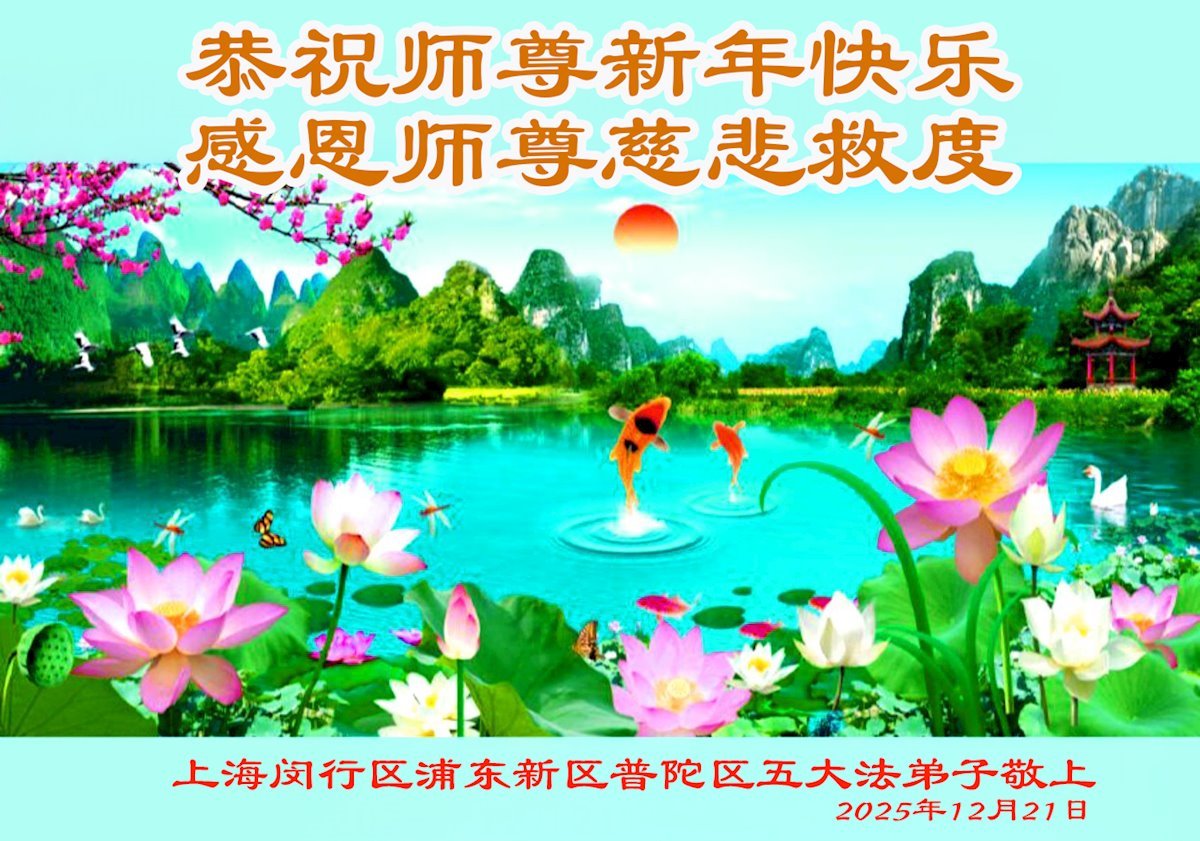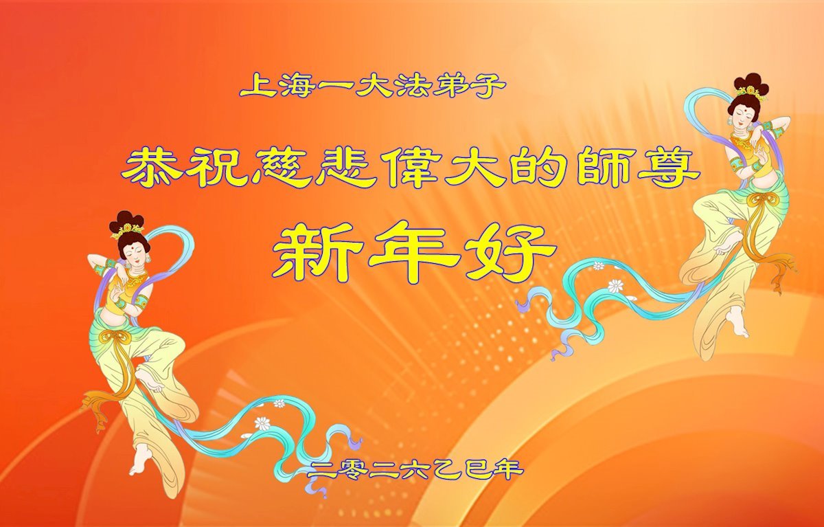 Falun Dafa praktikanti iz Šangaja s poštovanjem žele Učitelju Li Hongdžiju srećnu Novu godinu (37 čestitki)
