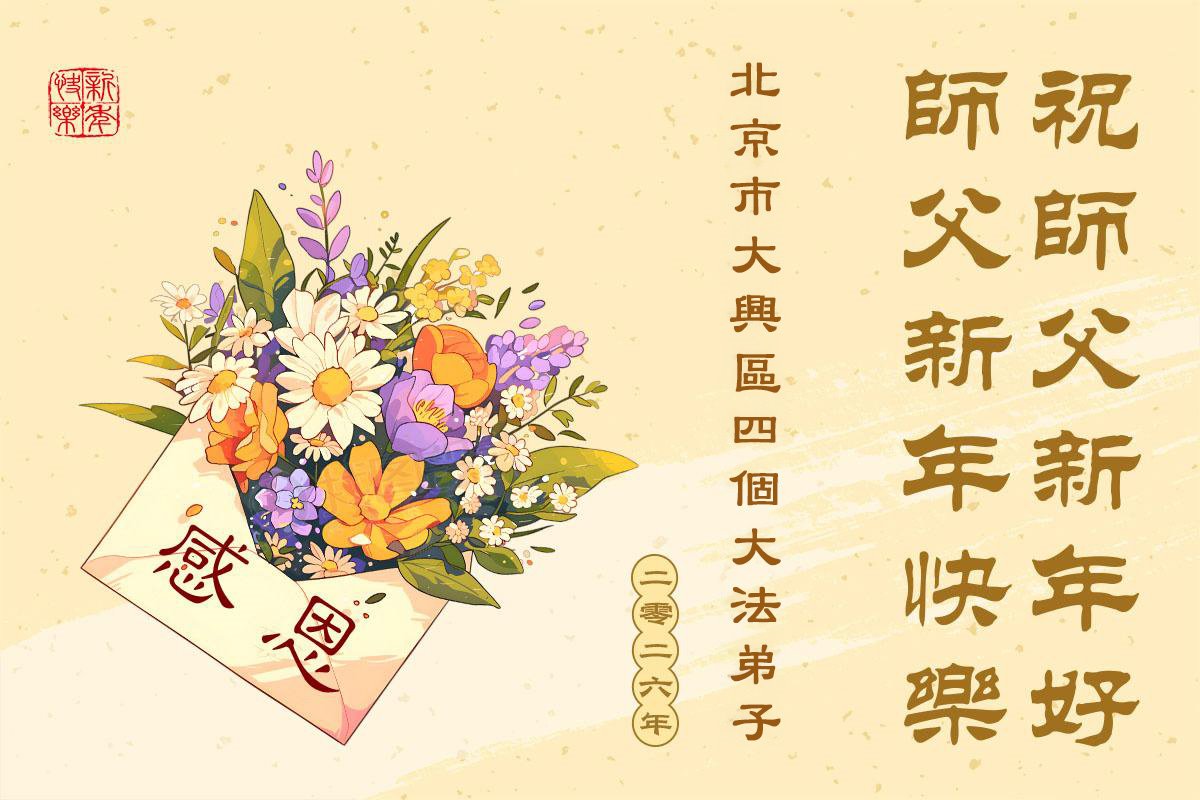 Falun Dafa praktikanti iz Pekinga s poštovanjem žele Učitelju Li Hongdžiju srećnu Novu godinu (125 čestitki)