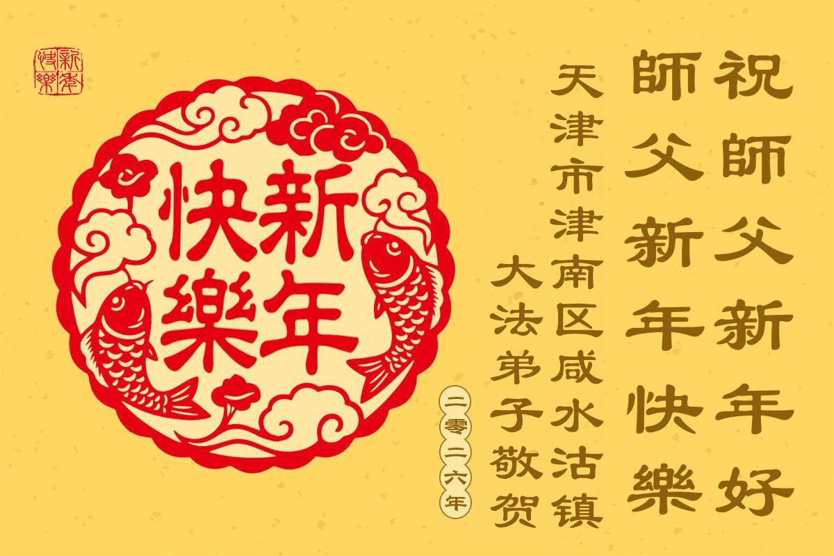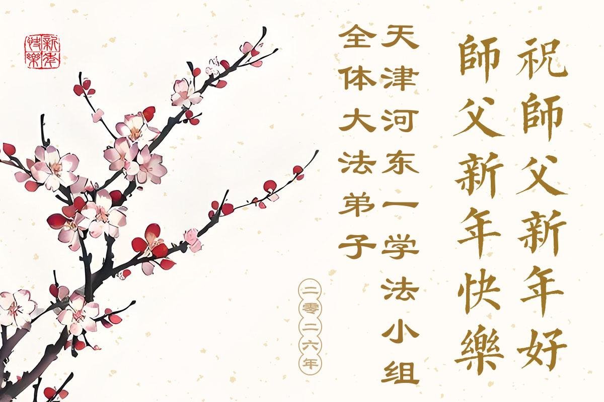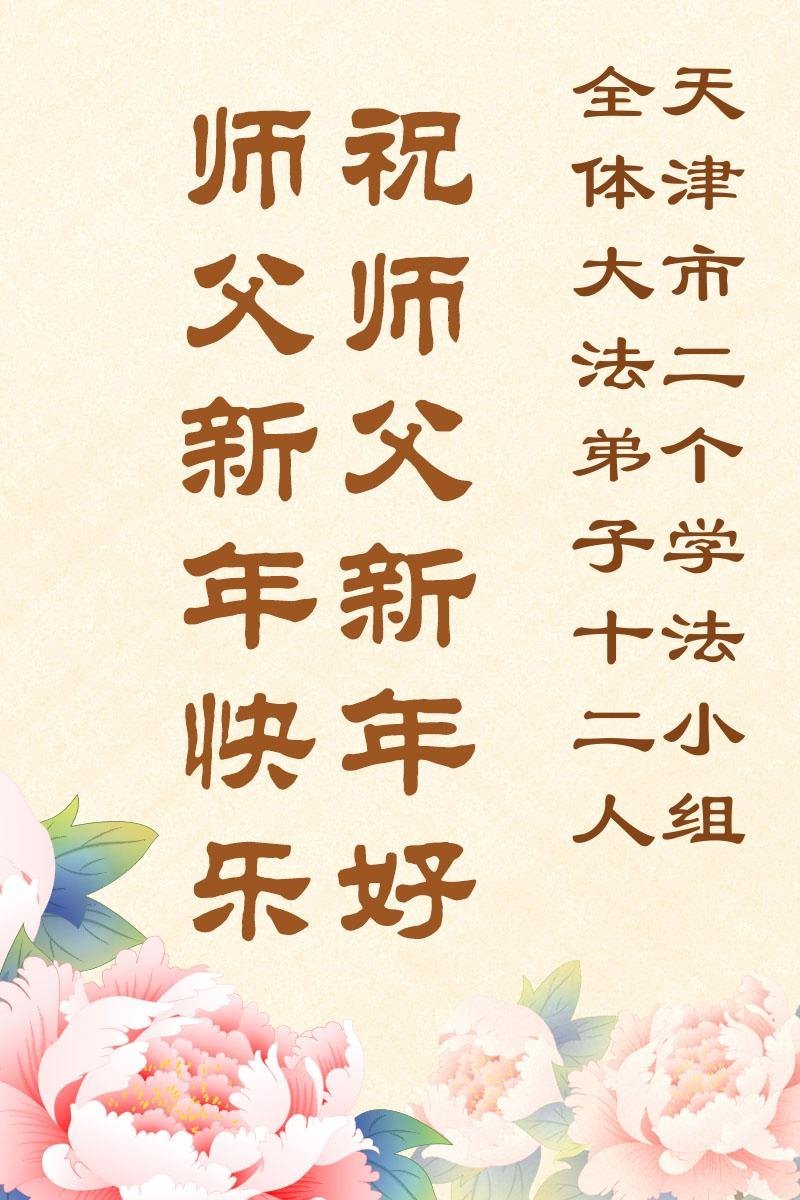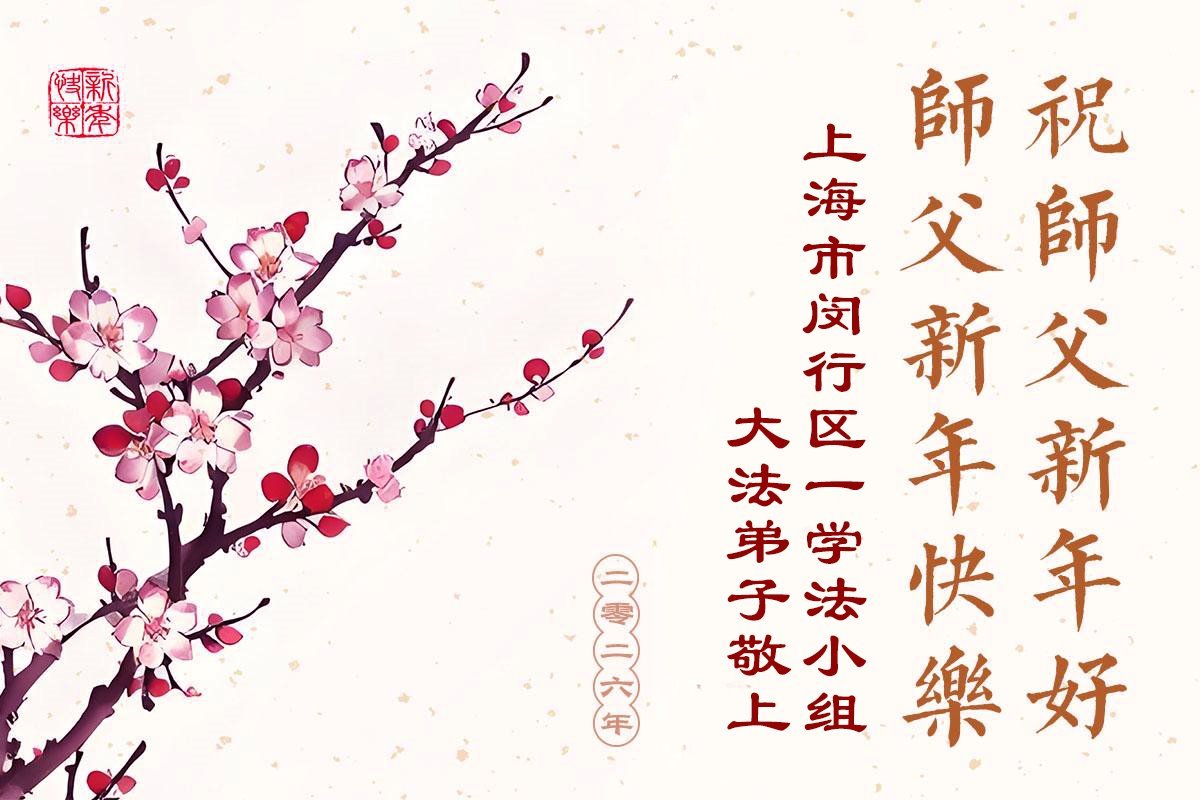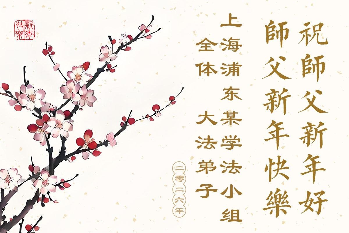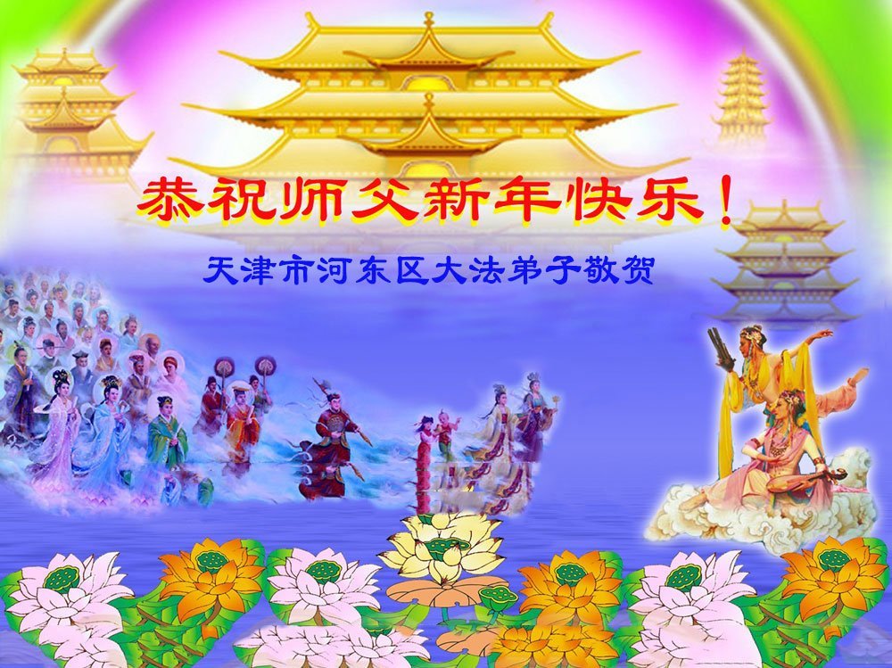 Falun Dafa praktikanti iz Tjenđina i Šangaja s poštovanjem žele Učitelju Li Hongdžiju srećnu Novu godinu (115 čestitki)