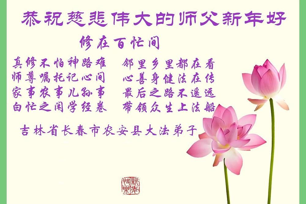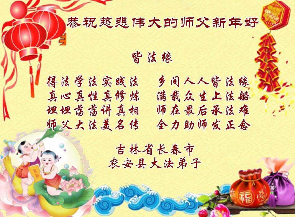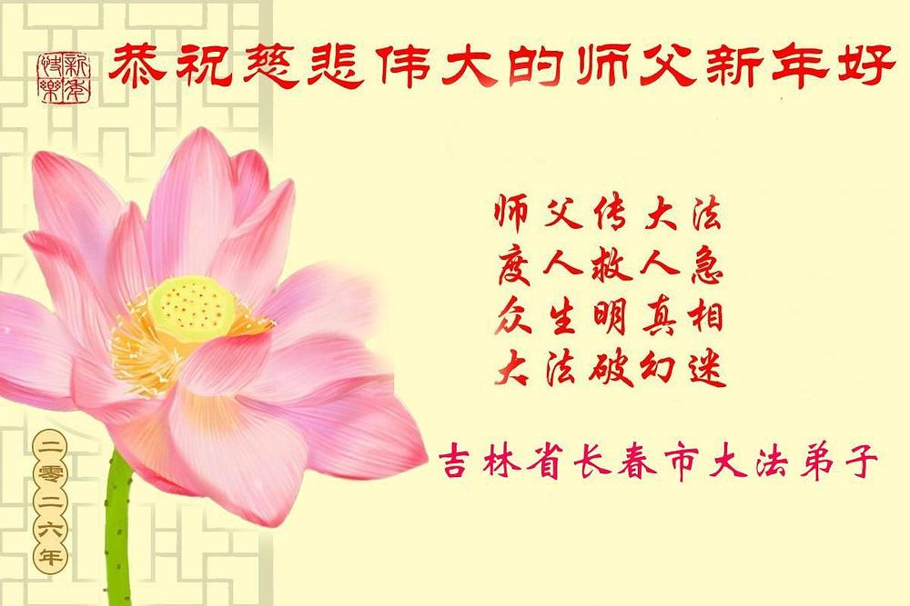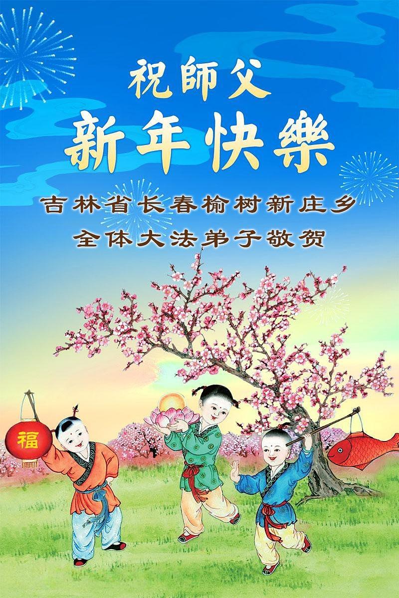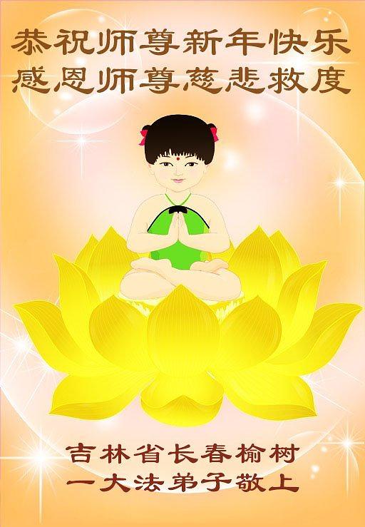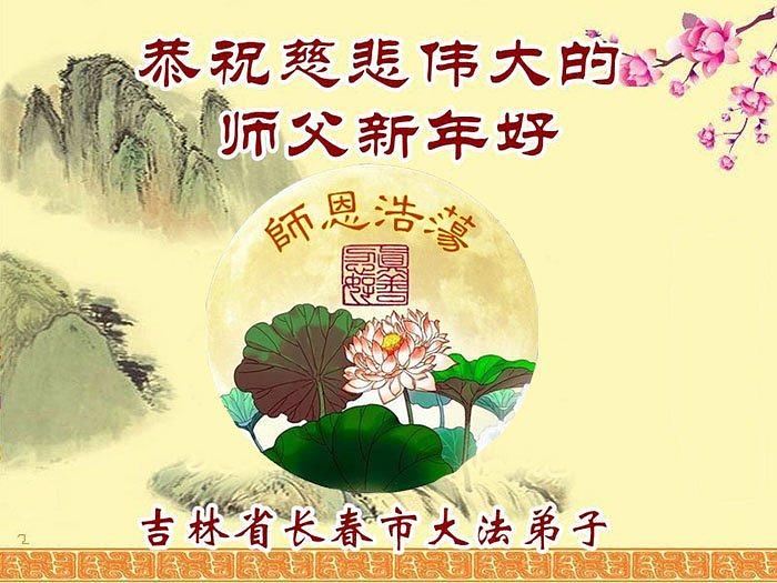 Falun Dafa praktikanti iz grada Čangčuna s poštovanjem žele Učitelju Li Hongdžiju srećnu Novu godinu (112 čestitki)