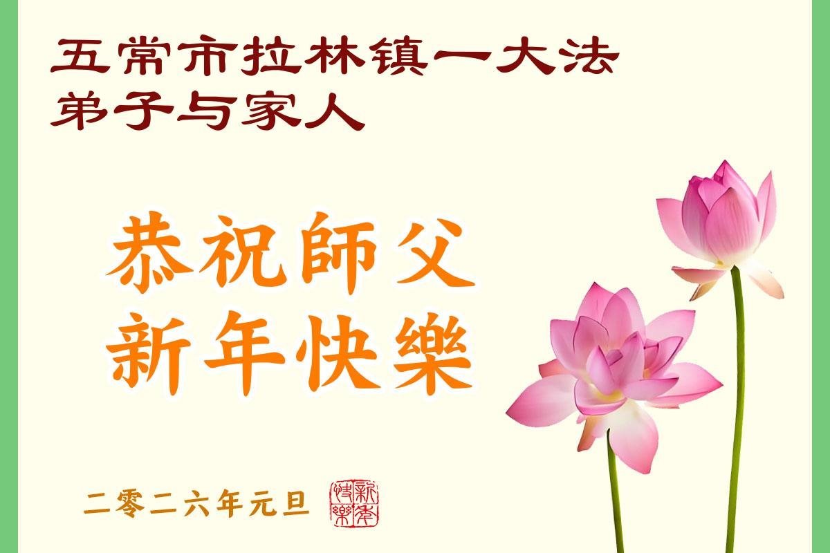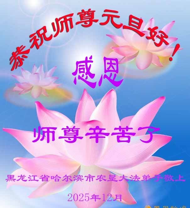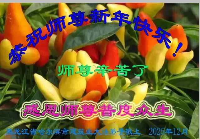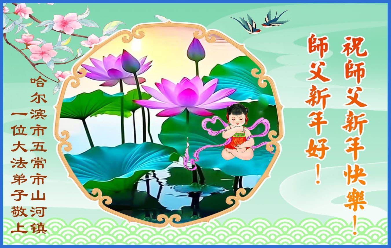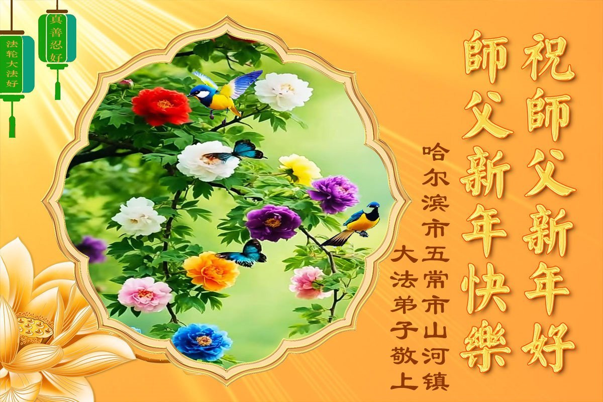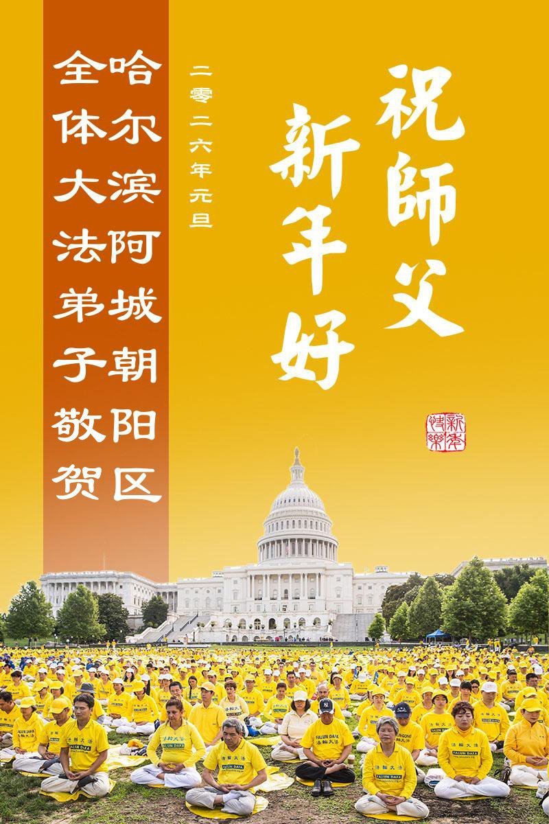 Falun Dafa praktikanti iz grada Harbina s poštovanjem žele Učitelju Li Hongdžiju srećnu Novu godinu (108 čestitki)