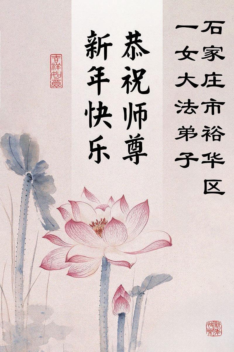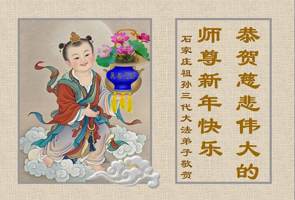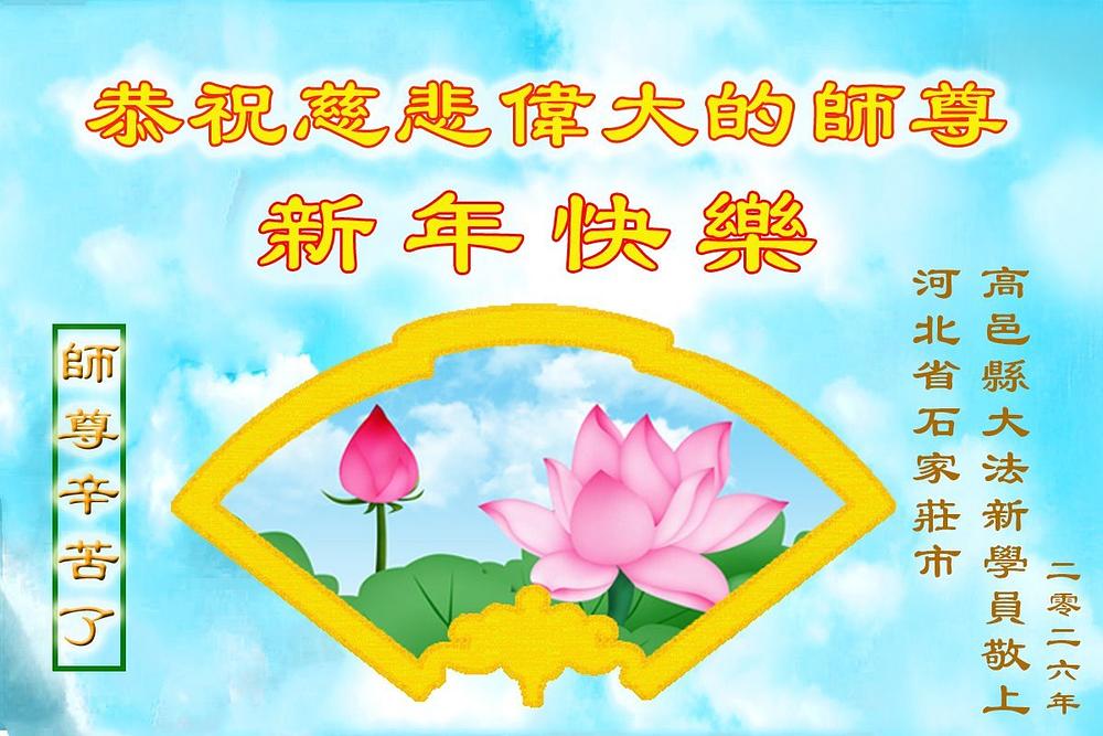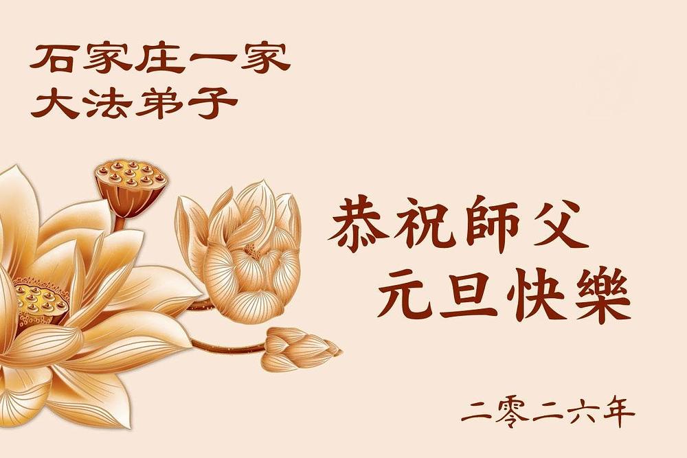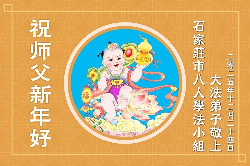 Falun Dafa praktikanti iz grada Šiđadžuang s poštovanjem žele Učitelju Li Hongdžiju srećnu Novu godinu (106 čestitki)