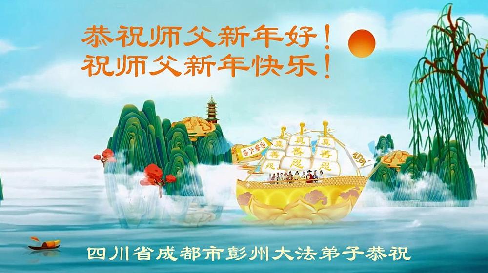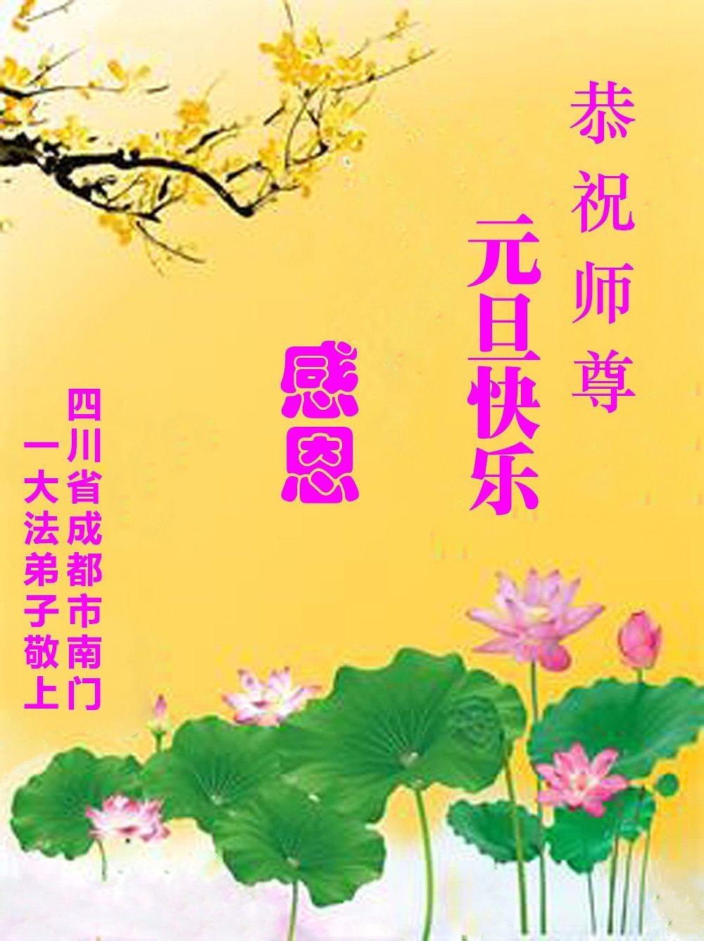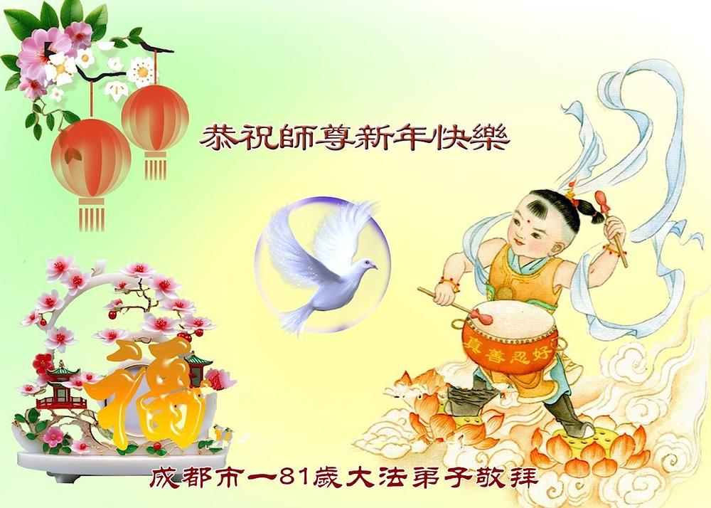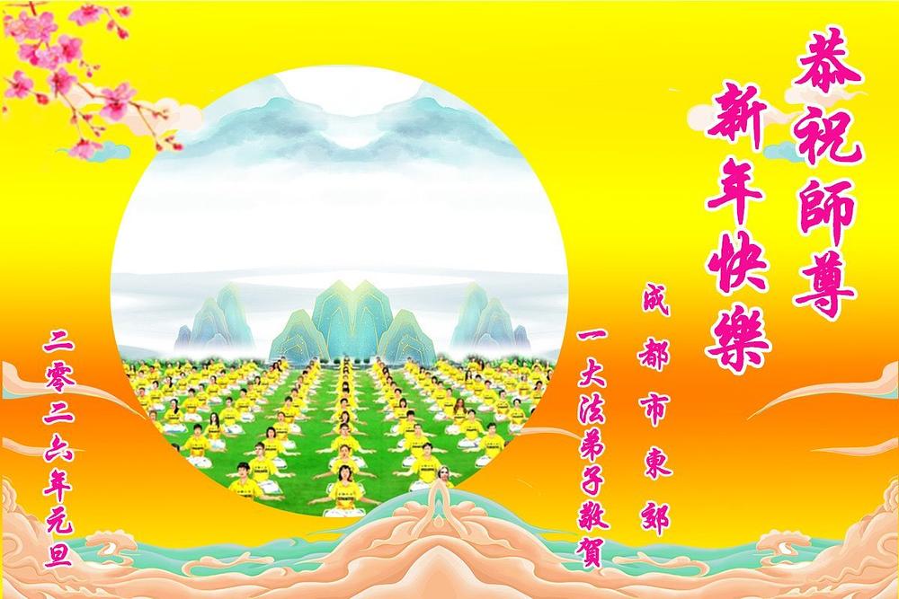 Falun Dafa praktikanti iz grada Čengdua s poštovanjem žele Učitelju Li Hongdžiju srećnu Novu godinu (102 čestitke)