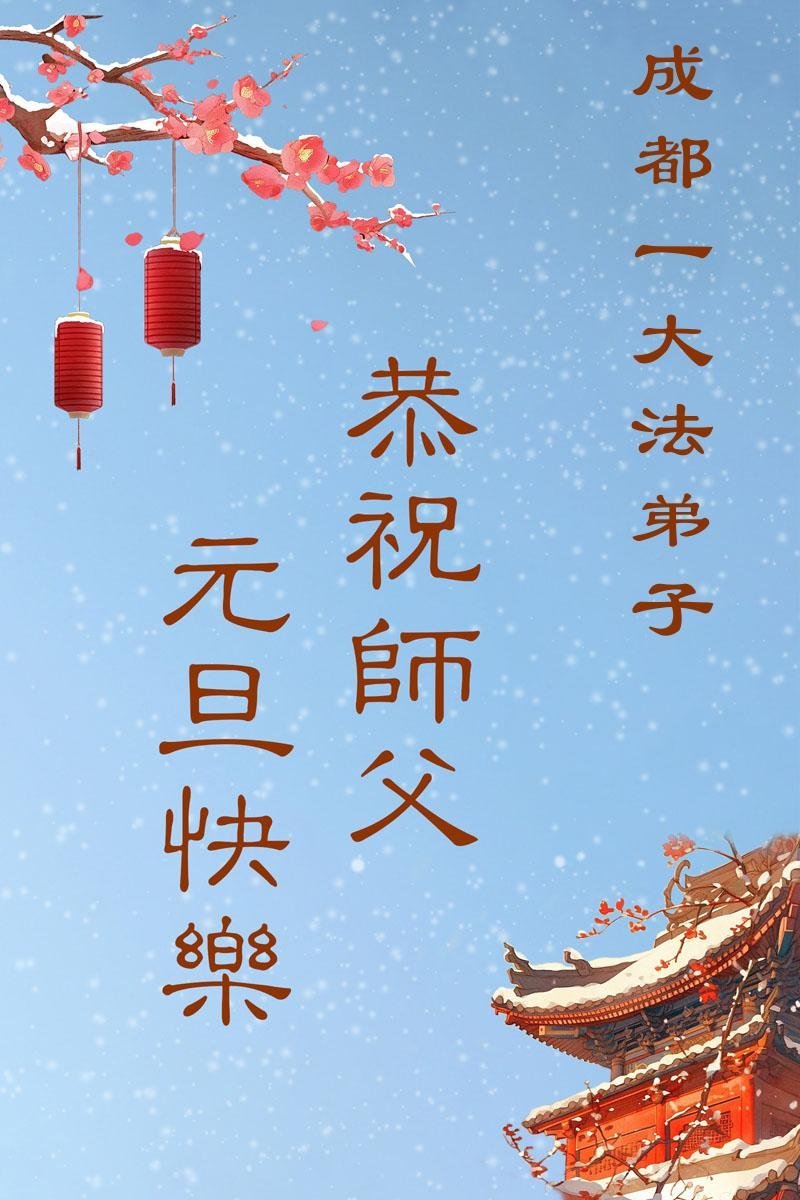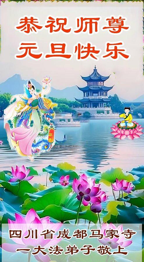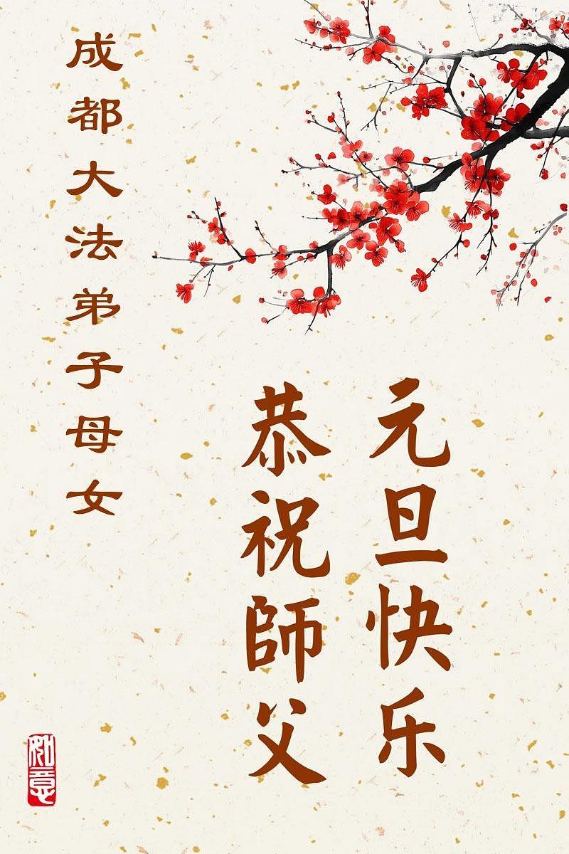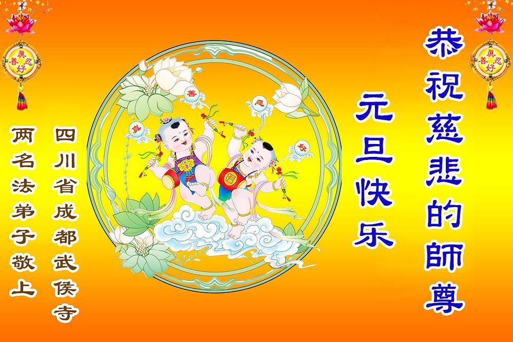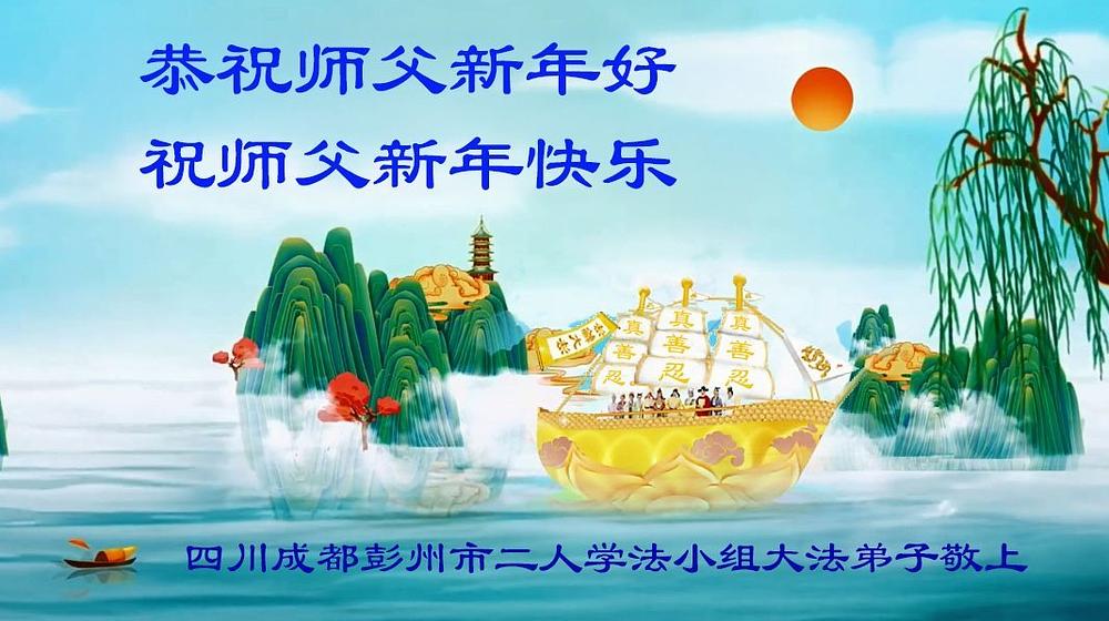 Falun Dafa praktikanti iz grada Čengdua s poštovanjem žele Učitelju Li Hongdžiju srećnu Novu godinu (102 čestitke)