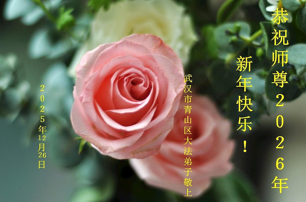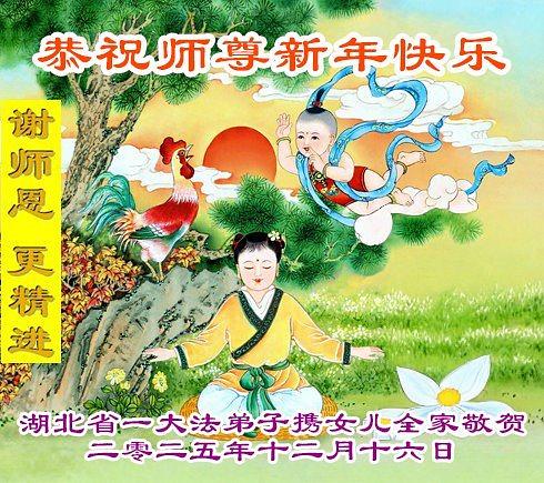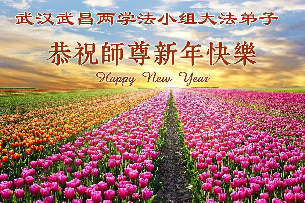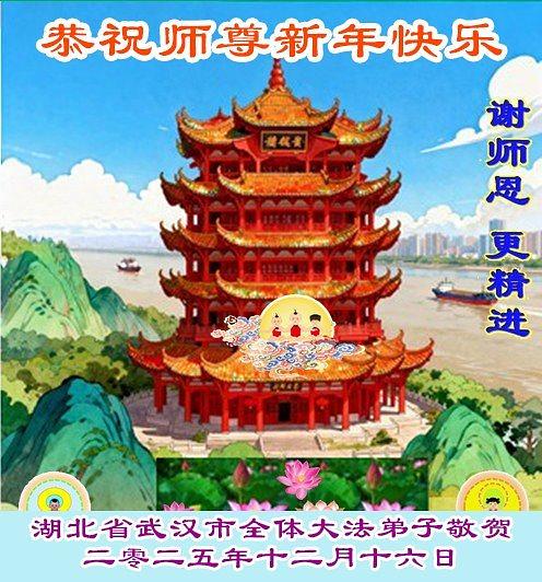 Falun Dafa praktikanti iz grada Vuhana s poštovanjem žele Učitelju Li Hongdžiju srećnu Novu godinu (59 čestitki)