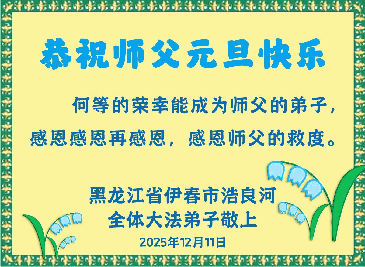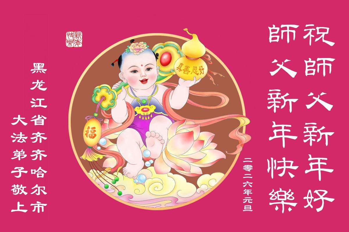 Falun Dafa praktikanti iz provincije Hejlungđang s poštovanjem žele Učitelju Li Hongdžiju srećnu Novu godinu (110 čestitki)
