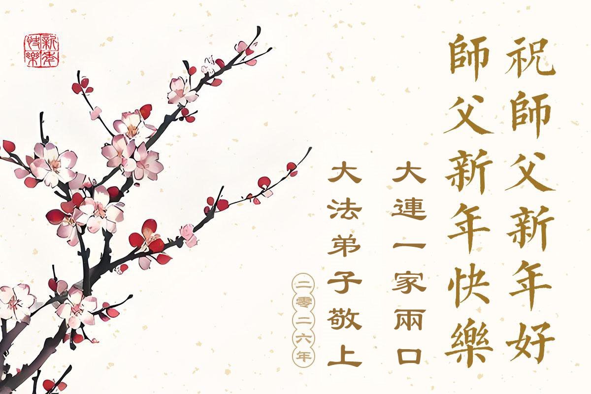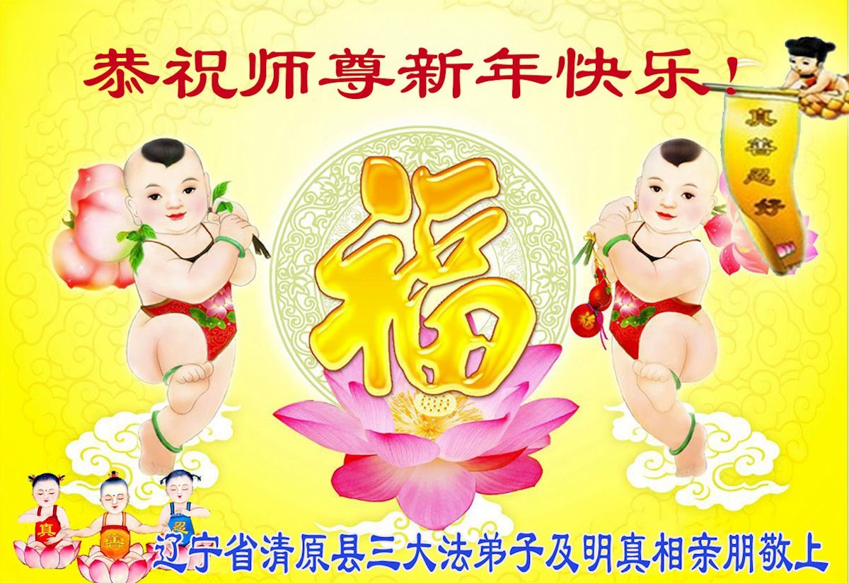 Falun Dafa praktikanti iz provincije Liaoning s poštovanjem žele Učitelju Li Hongdžiju srećnu Novu godinu (108 čestitki)