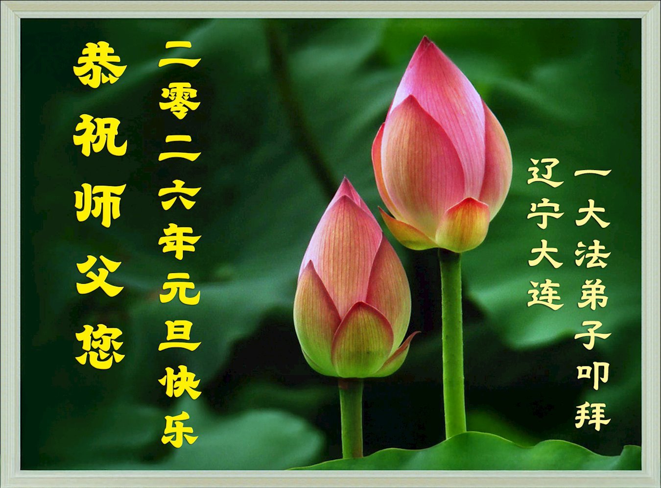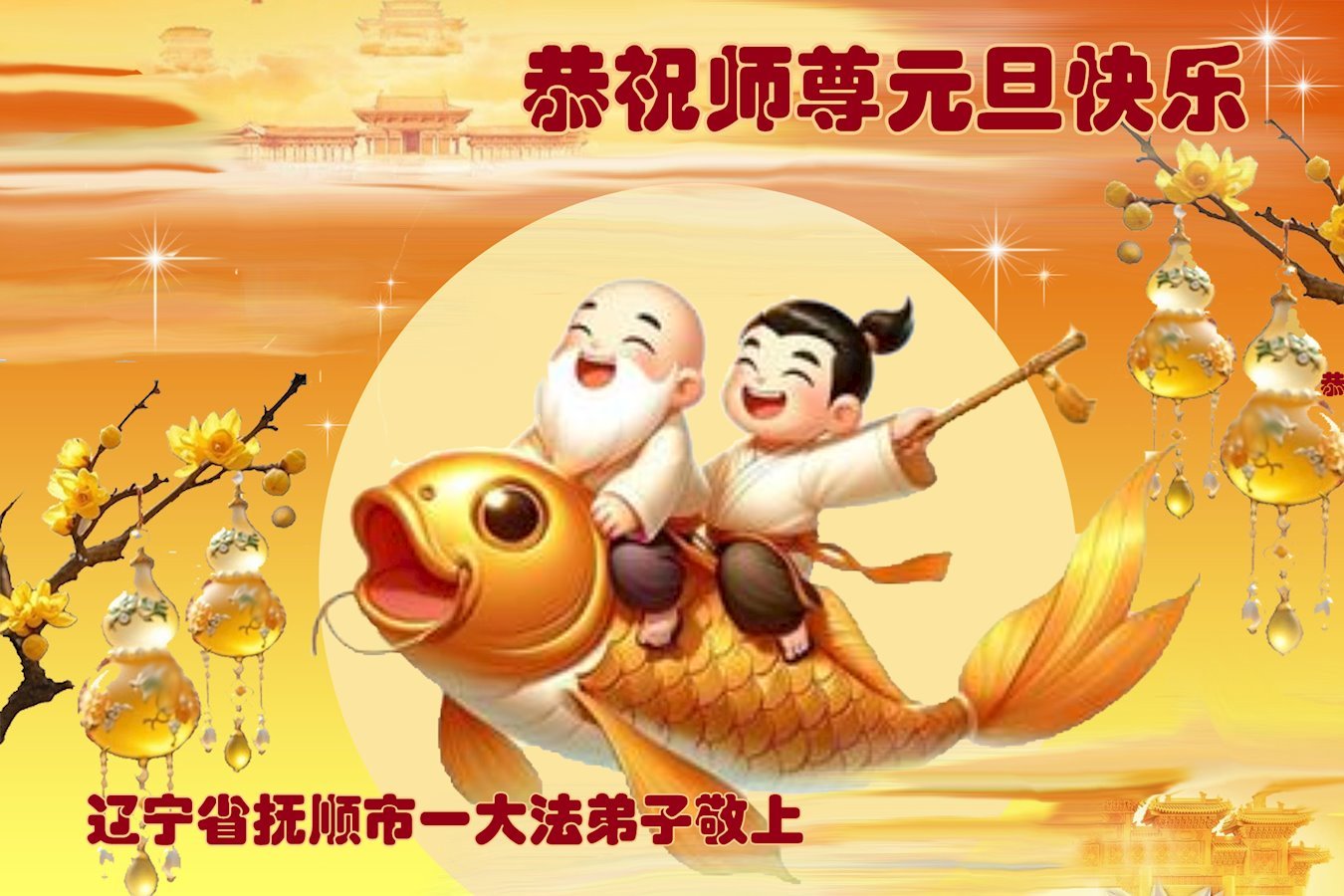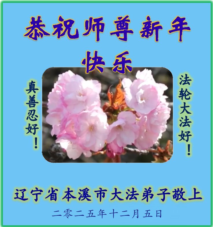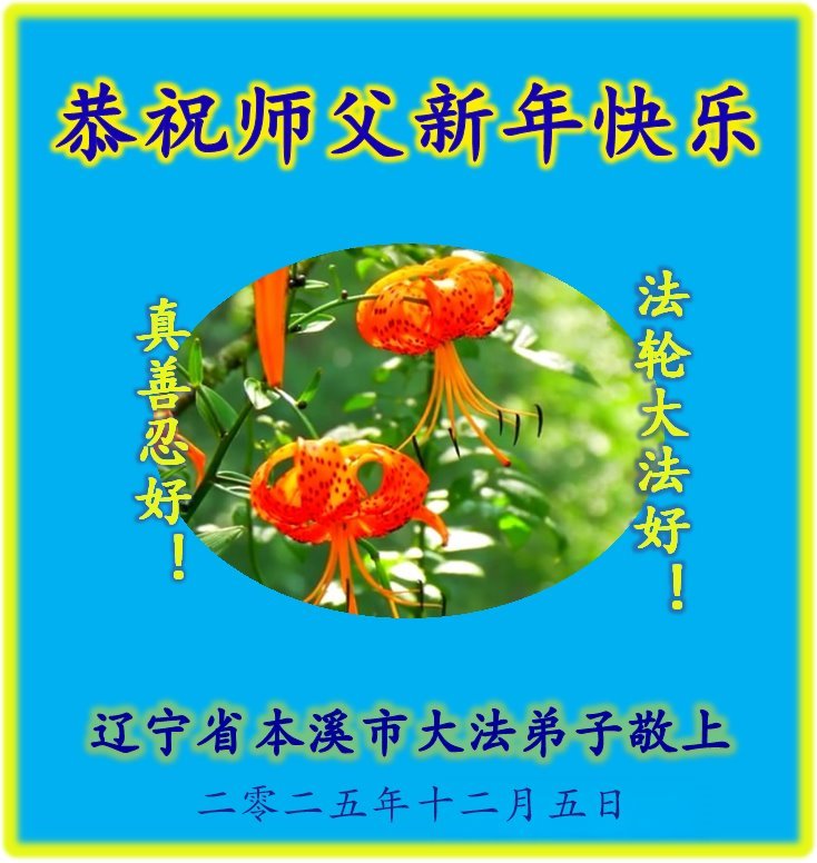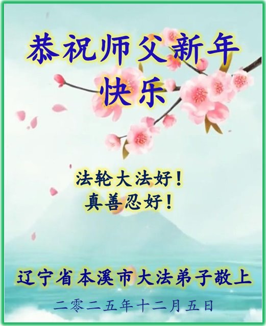 Falun Dafa praktikanti iz provincije Liaoning s poštovanjem žele Učitelju Li Hongdžiju srećnu Novu godinu (108 čestitki)