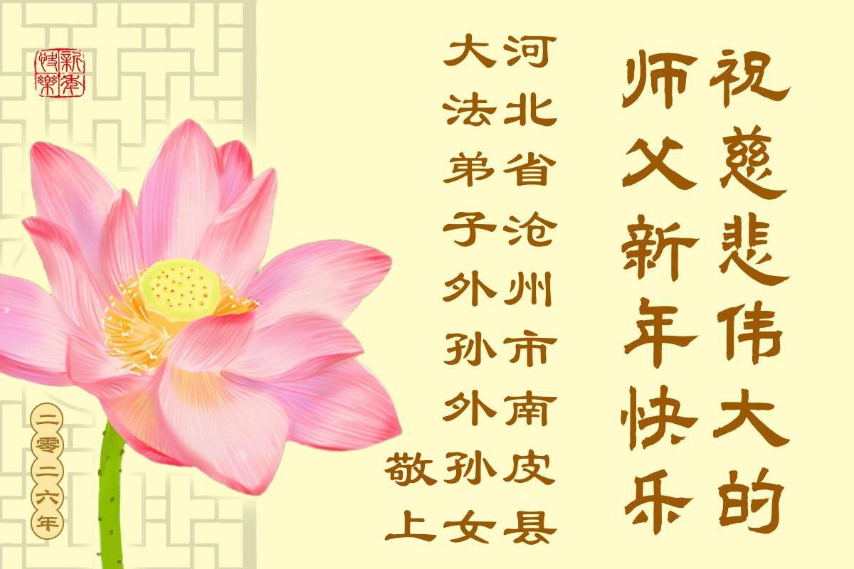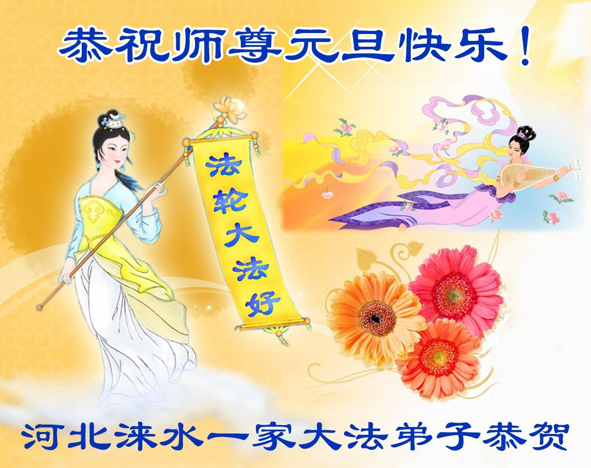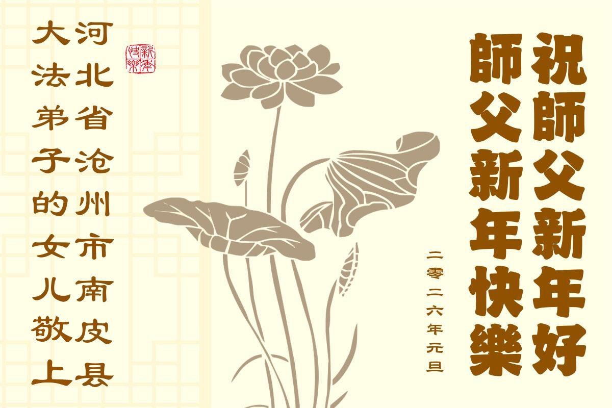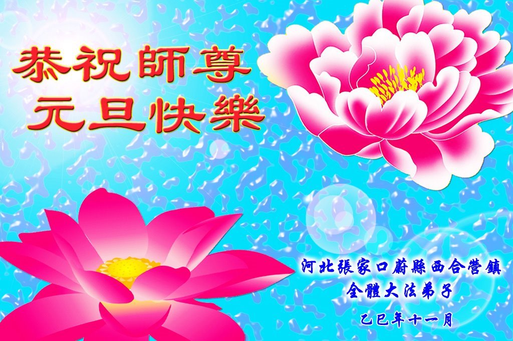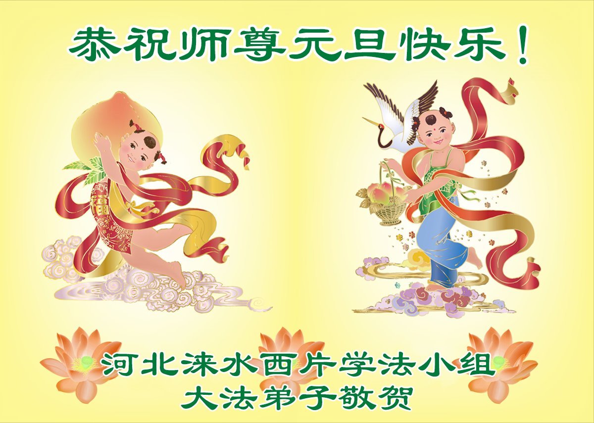 Falun Dafa praktikanti iz provincije Hebej s poštovanjem žele Učitelju Li Hongdžiju srećnu Novu godinu (108 čestitki)