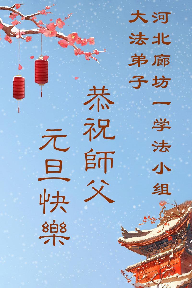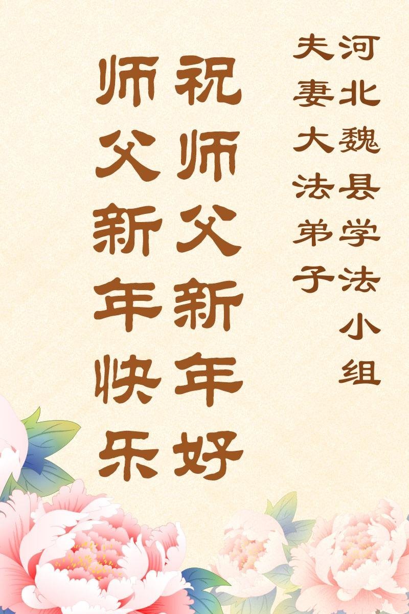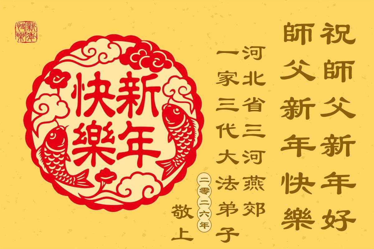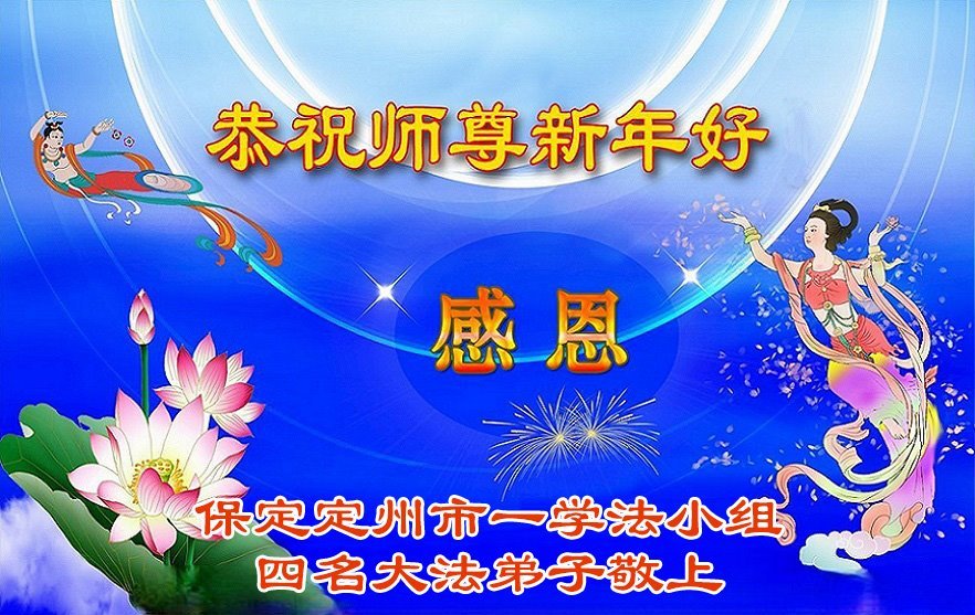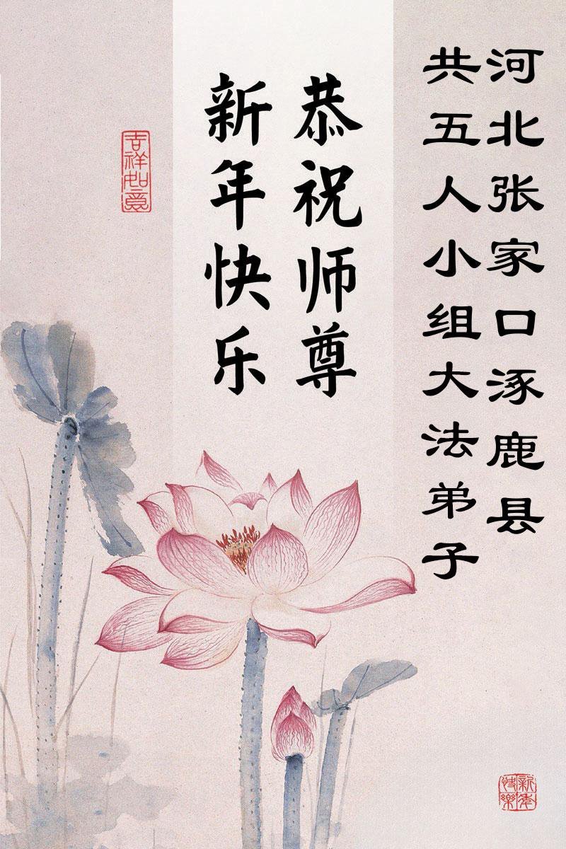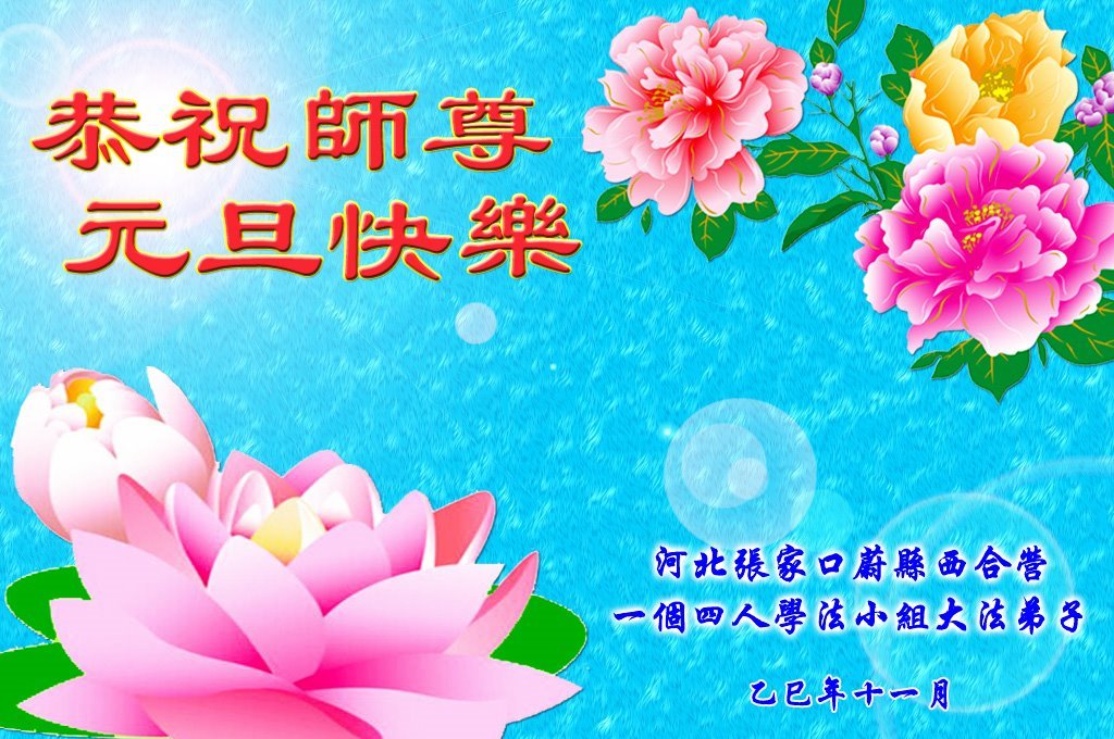 Falun Dafa praktikanti iz provincije Hebej s poštovanjem žele Učitelju Li Hongdžiju srećnu Novu godinu (108 čestitki)