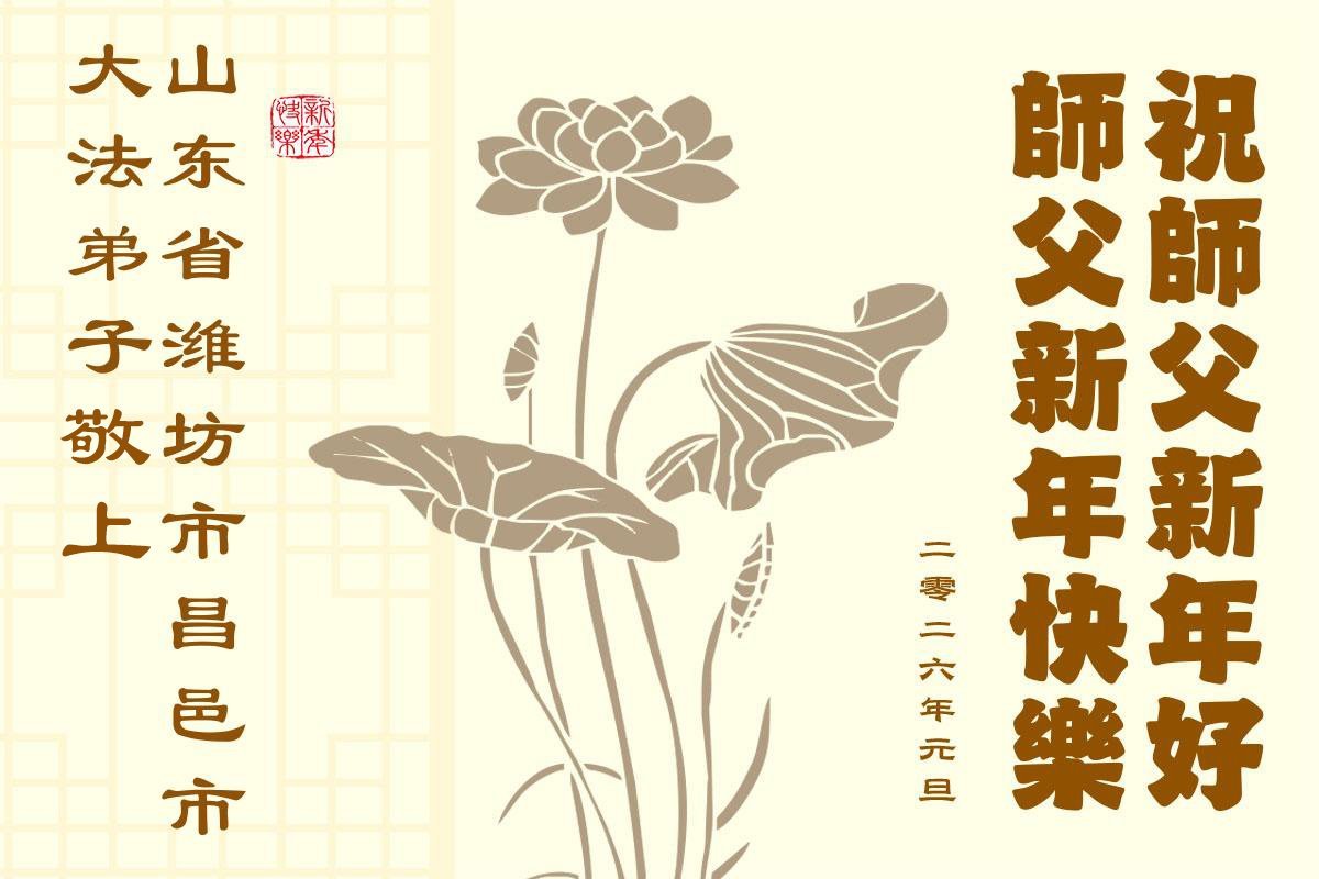 Falun Dafa praktikanti iz provincije Šandong s poštovanjem žele Učitelju Li Hongdžiju srećnu Novu godinu (111 čestitki)