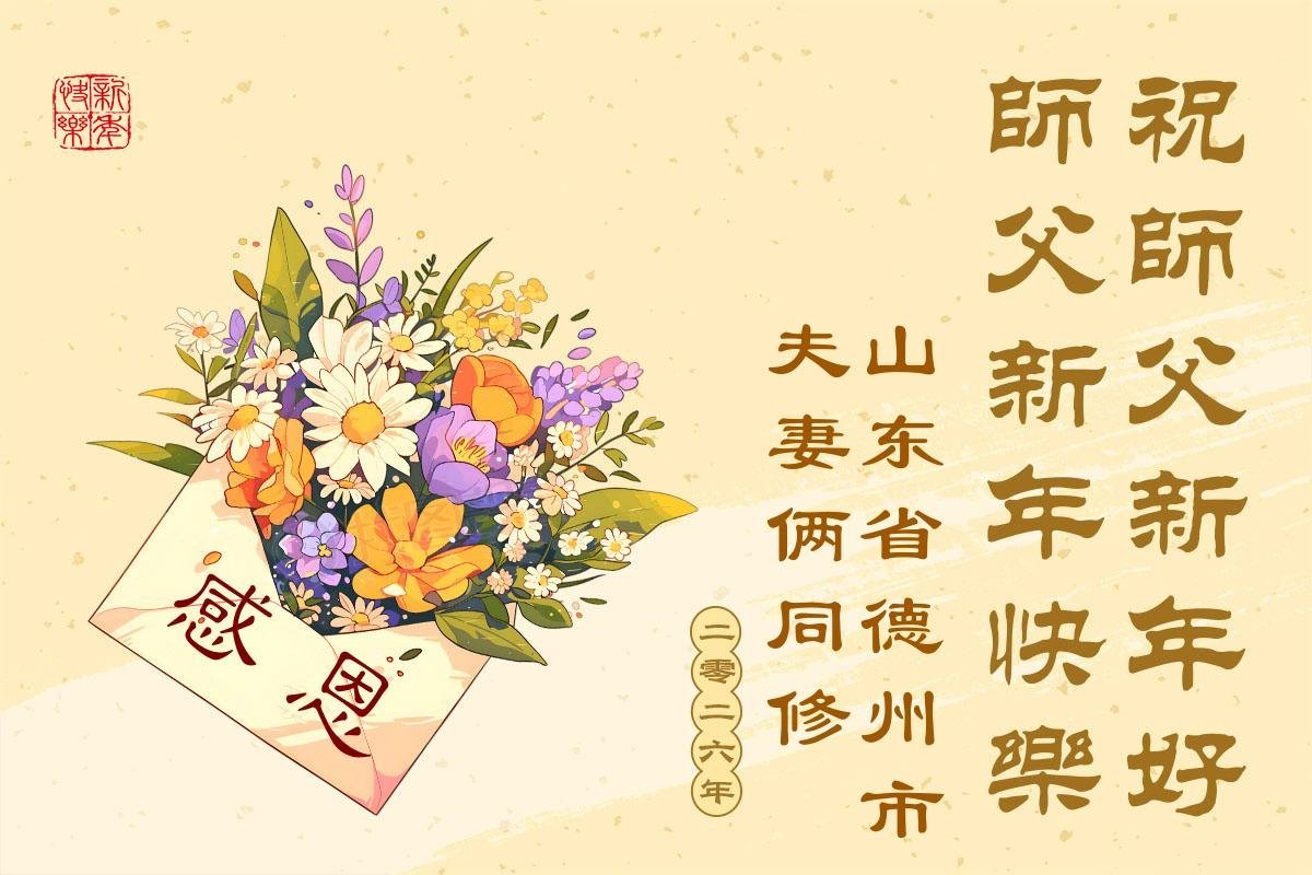 Falun Dafa praktikanti iz provincije Šandong s poštovanjem žele Učitelju Li Hongdžiju srećnu Novu godinu (113 čestitki)