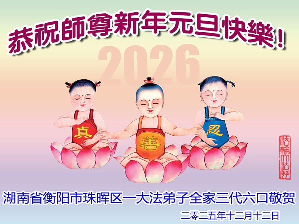 Praktikanti Falun Dafe iz provincija Hunan, Guangdong i Đangsu s poštovanjem žele Učitelju Li Hongdžiju srećnu Novu godinu (106 čestitki)