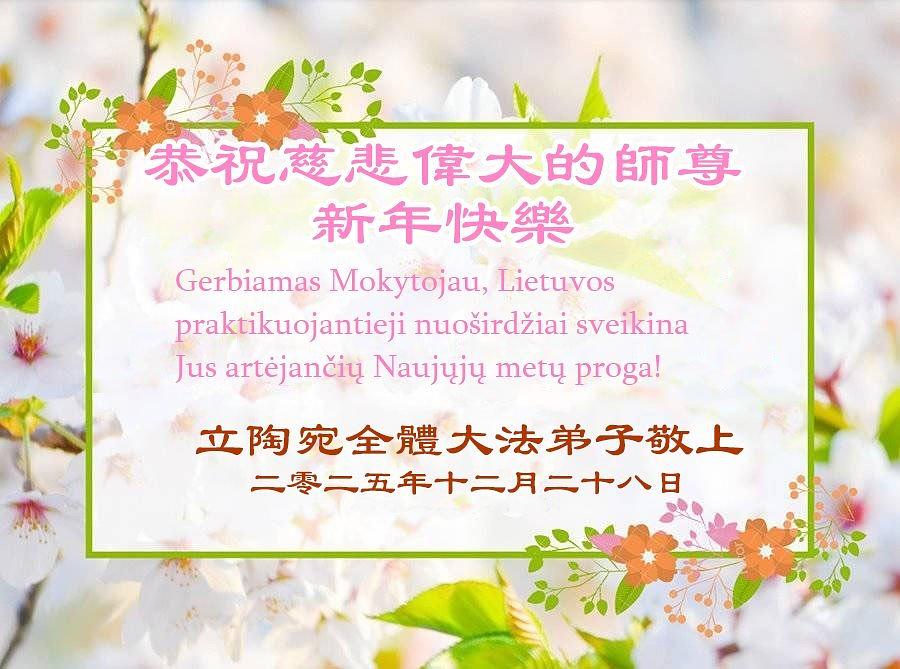 Čestitka praktikanata iz DanskeNovogodišnje čestitke praktikanata iz Holandije i BelgijePraktikanti iz Južne Koreje žele Učitelju Liju sretnu Novu godinu!Novogodišnje čestitke praktikanata iz Japana„Sretna Nova godina, Učitelju Li!“, napisali su praktikanti u Indoneziji.Čestitka praktikanata iz AustralijeNovogodišnje čestitke praktikanata iz GrčkeČestitka praktikanata iz Mongolije i Unutrašnje MongolijePraktikanti iz Globalnog servisnog centra za napuštanje Komunističke partije Kine (Tuidang centar) u Torontu, Kanada, žele Učitelju Li-u sretnu Novu godinu!Čestitka praktikanata iz Brazila