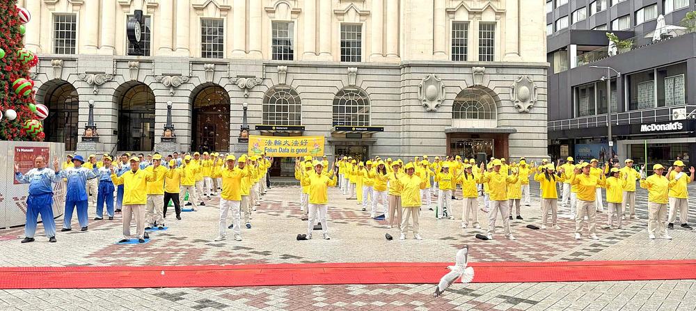Falun Dafa (Falun Gong) praktikanti su proslavili dolazak Nove godine održavanjem aktivnosti u centru Aucklanda, Commercial Bay, 27. decembra 2025. godine. Demonstrirali su Falun Dafa vježbe i podučavali posmatrače. Također su održali skup na kome su informirali ljude o 26-godišnjem progonu u Kini. Advokat za ljudska prava Kerry Gore se obratio prisutnima, pohvalivši upornost praktikanata pozivajući ljude iz svih sfera života na Novom Zelandu da pomognu praktikantima da zaustave progon ove prakse od strane Komunističke partije Kine (KPK).