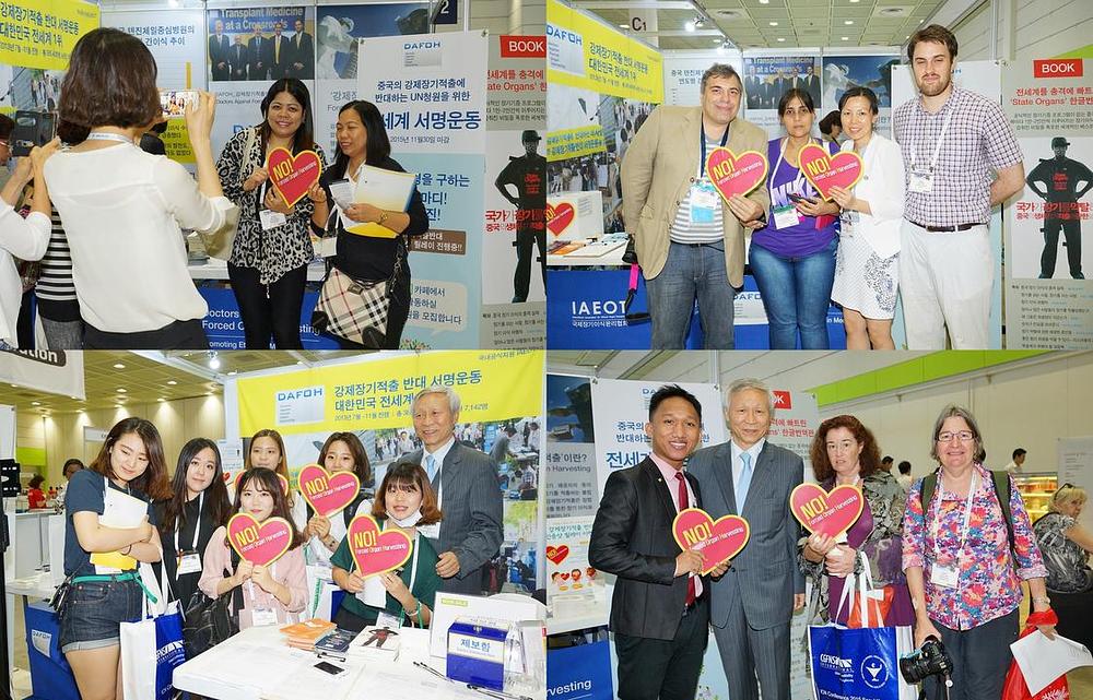 Međunarodna Asocijacija za Etiku Organa (IAEOT) i Doktori Protiv Prinudnog Uzimanja Organa (DAFOH) su na ovoj konferenciji imali svoj info pult. Glavni razlog njihovog prisustva na konferenciji je bio informisanje 12.000 učesnika konferencije o sistematskom ubijanju praktikanata da bi im se uzeli njihovi tjelesni organi.