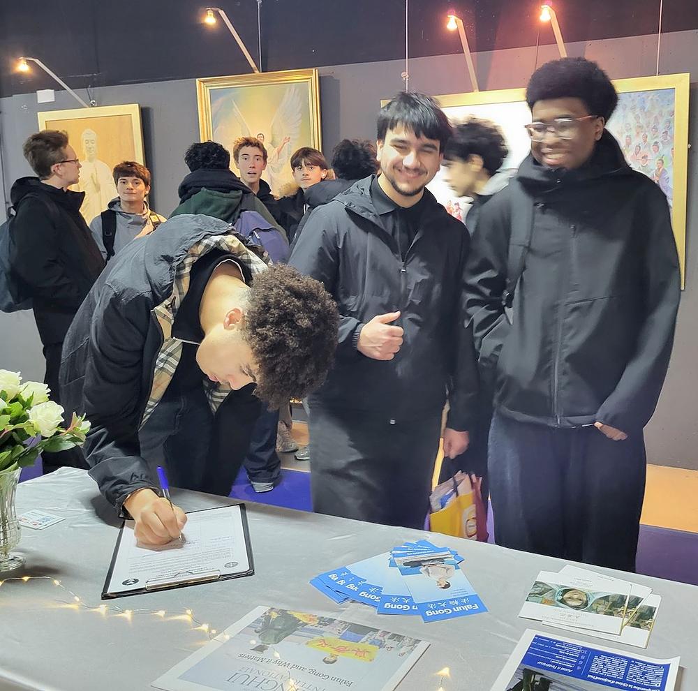 Izložba je privukla mnoge mlade ljude i studente koji su pogledali slike i pročitali opise. Nakon toga, mnogi od njih potpisali su peticiju kojom se od Pekinga traži da prekine progon Falun Gonga u Kini.