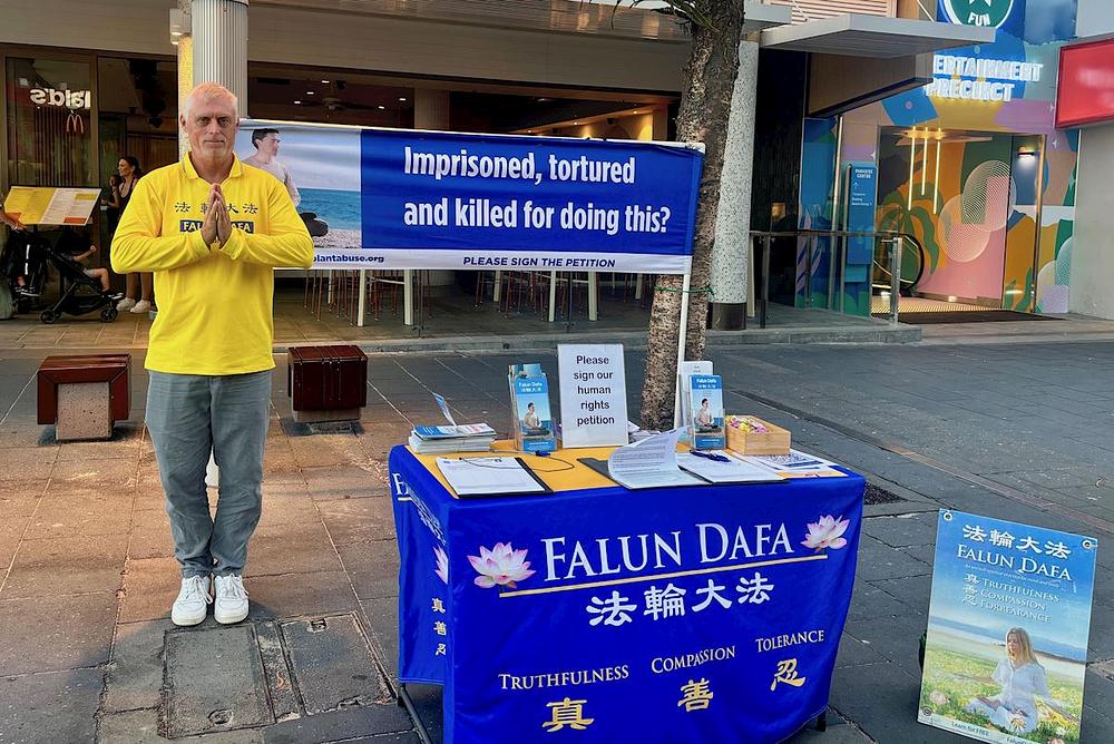 „Živim u malom gradu. Svako povratno putovanje između mesta za objašnjavanje istine i mog doma zahteva više od dva sata vožnje automobilom. U Surfers Paradajsu srećem meštane i turiste koji nikada nisu čuli za Falun Dafu. Govorim ljudima o lepoti i dobroti Falun Dafe i razotkrivam laži Komunističke partije Kine (KPK) u vezi sa tekućim progonom praktikanata. To pomaže ljudima da razumeju istinu i odbace laži koje širi Partija. Oni koji razumeju istinu imaće svetlu budućnost. Znam da su moji napori da pomognem ljudima i stvorim bolji svet smisleni.