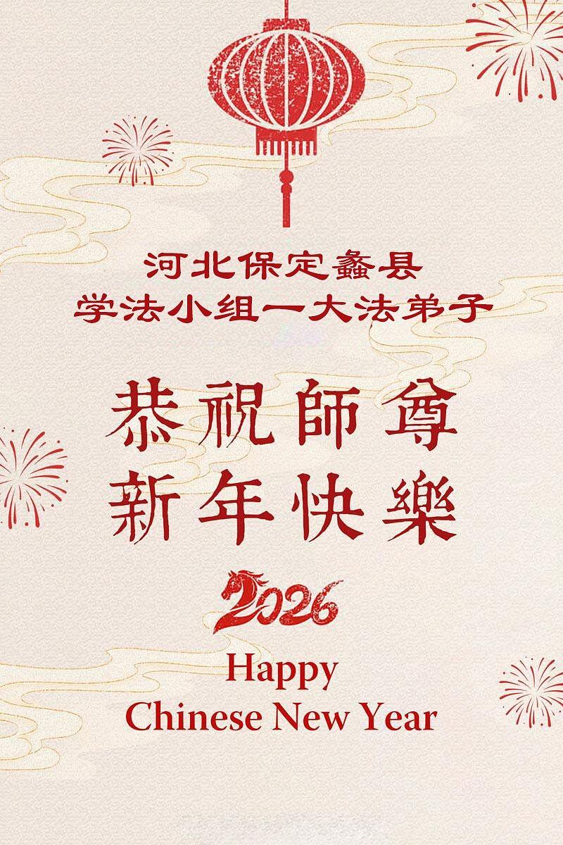 Povodom proslave Kineske nove godine 2026, praktikanti Falun Dafe upućuju svoje najiskrenije čestitke Učitelju Li Hongdžiju, osnivaču prakse. Zahvaljuju mu što je predstavio Dafu svetu i zavetuju se da će se bolje kultivisati u novoj godini.
