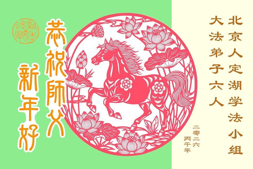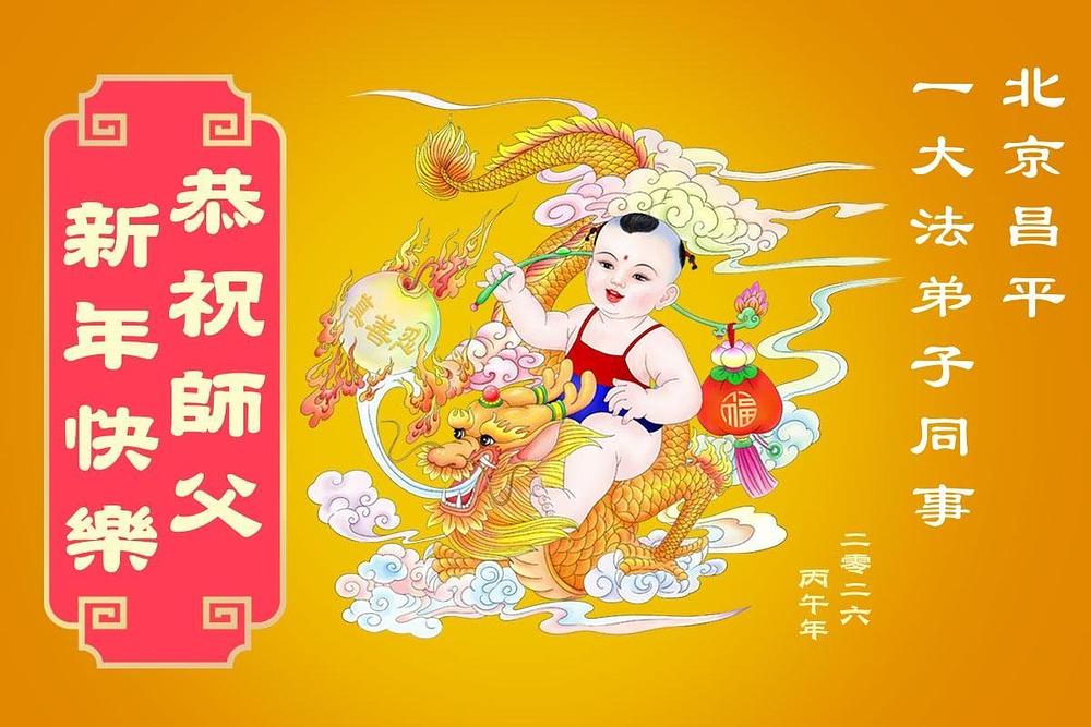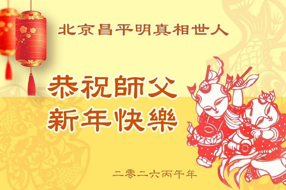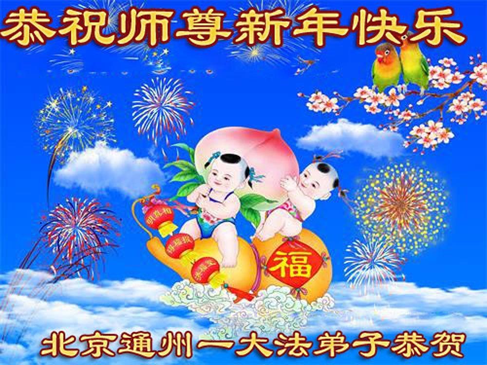 Falun Dafa praktikanti u Pekingu s poštovanjem žele Učitelju Li Hongdžiju srećnu kinesku Novu godinu (108 čestitki)