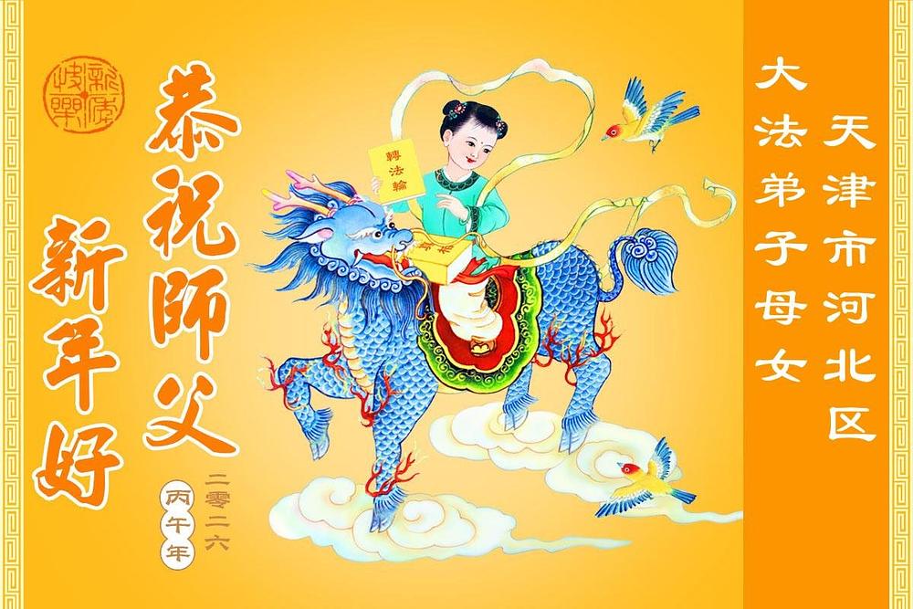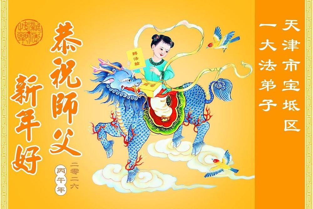 Falun Dafa praktikanti u Tjenđinu i Šangaju s poštovanjem žele Učitelju Li Hongdžiju srećnu kinesku Novu godinu (107 čestitki)