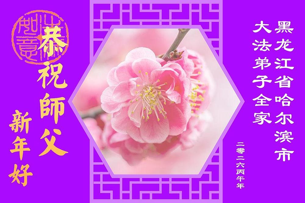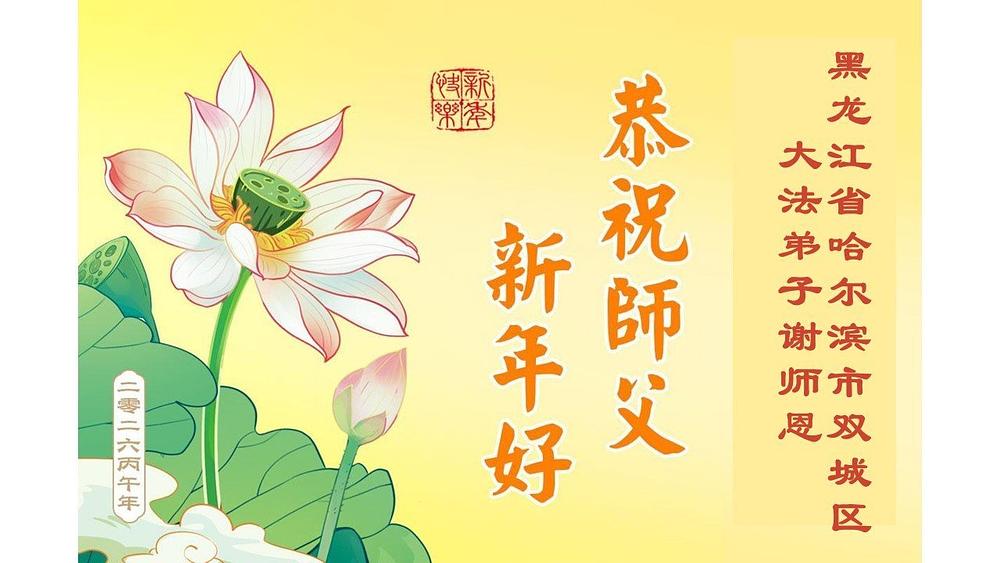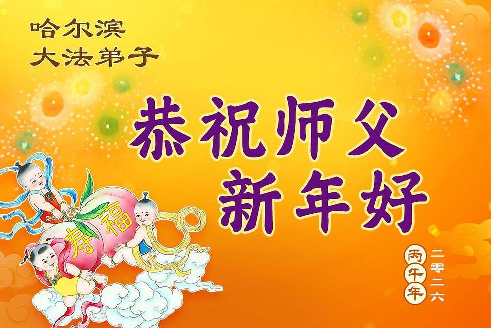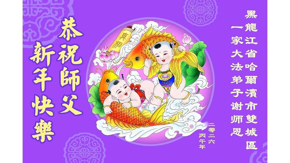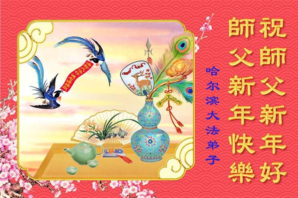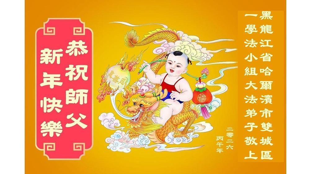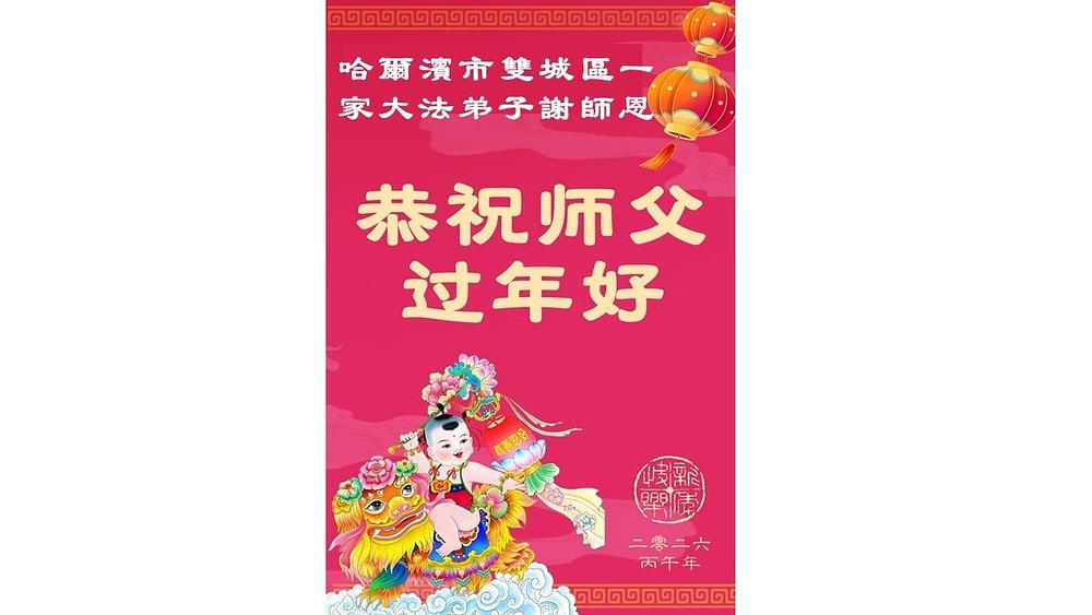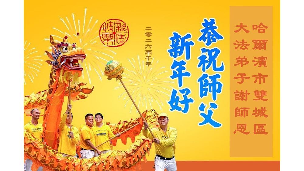 Falun Dafa praktikanti u gradu Harbinu s poštovanjem žele Učitelju Li Hongdžiju srećnu kinesku Novu godinu (104 čestitke)