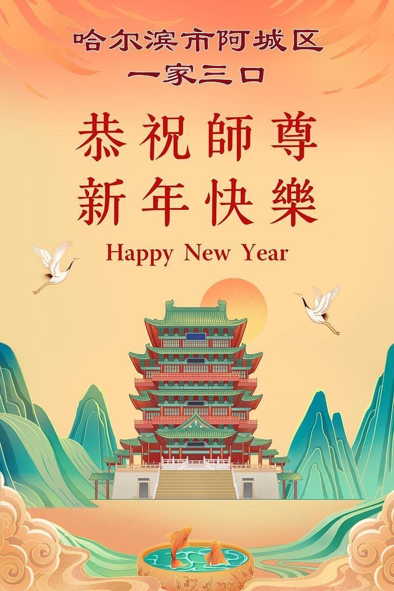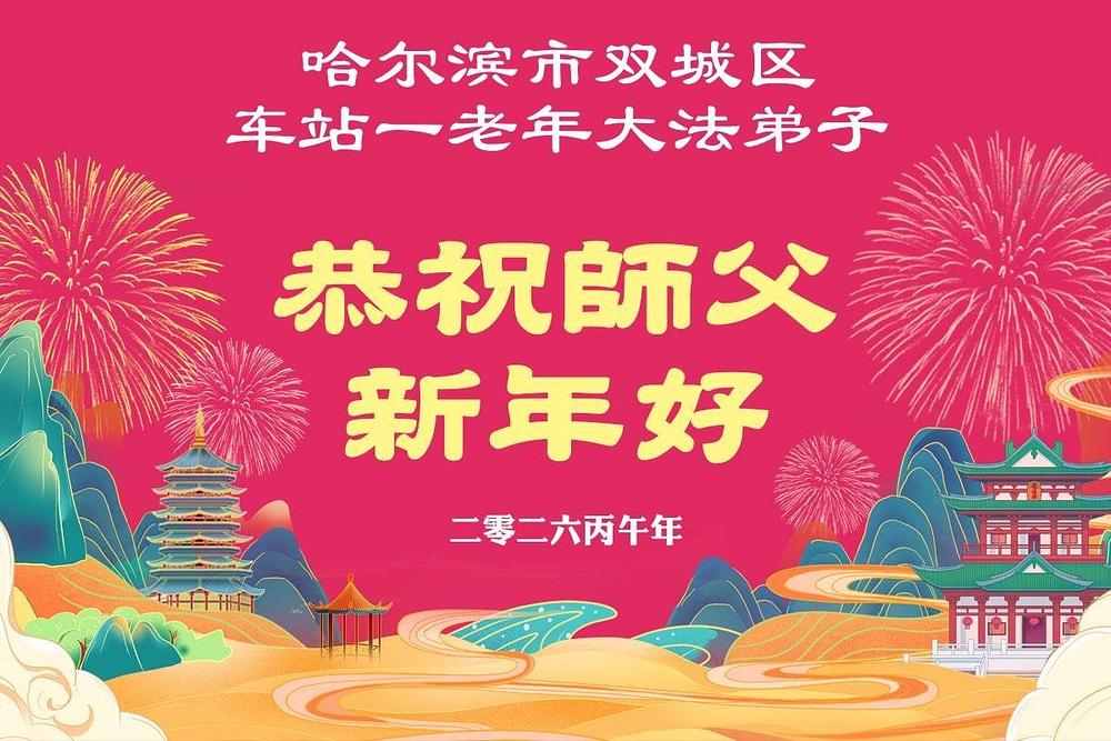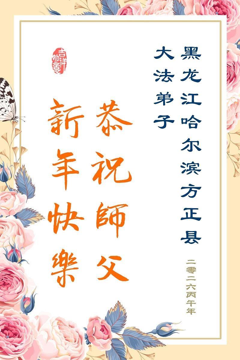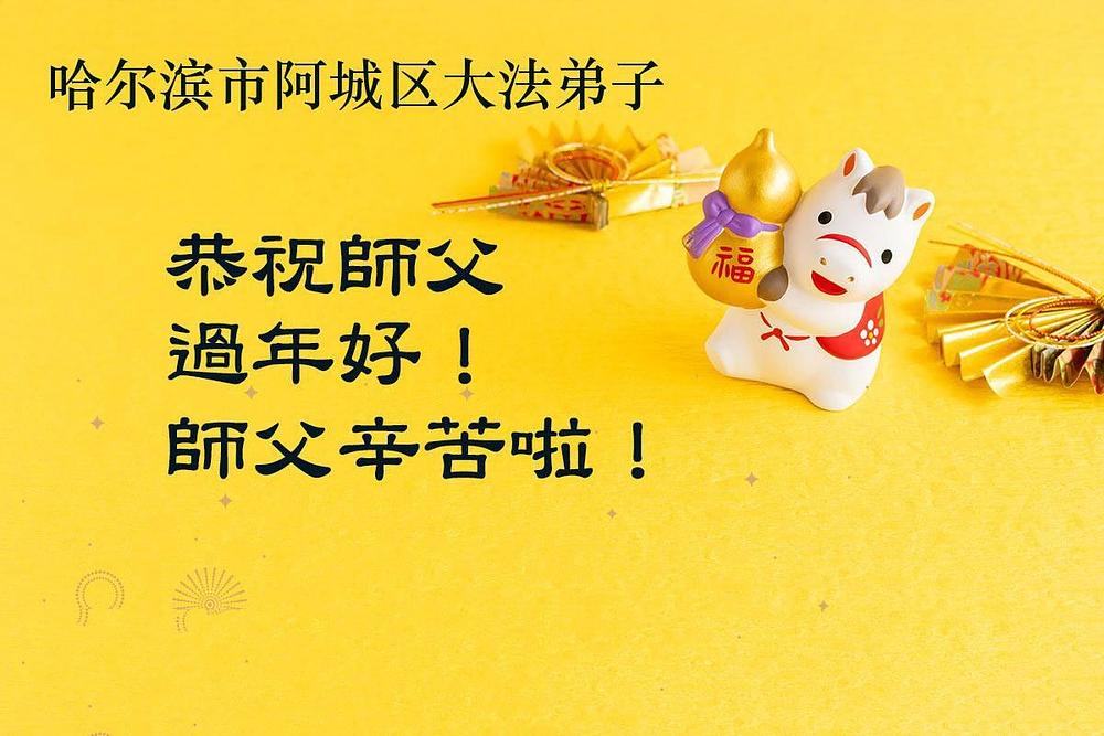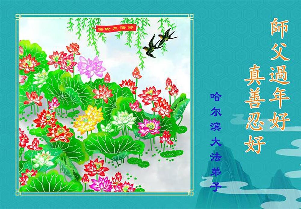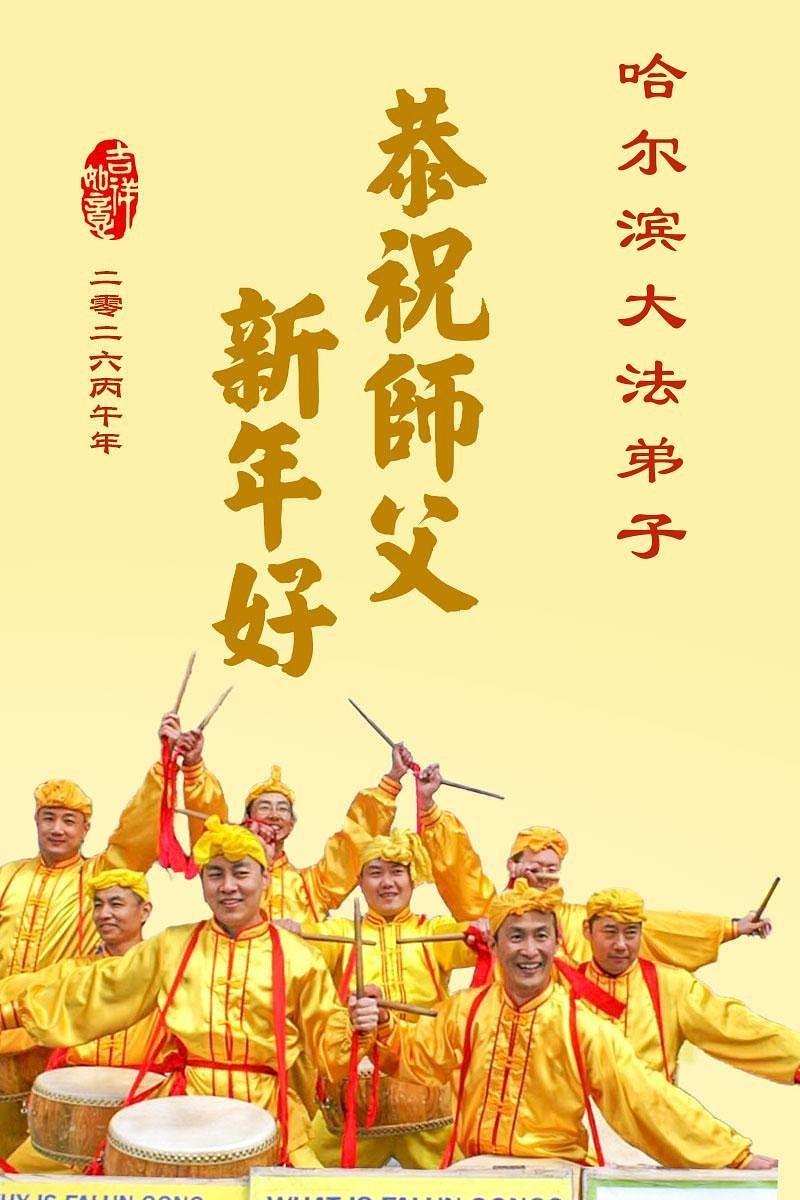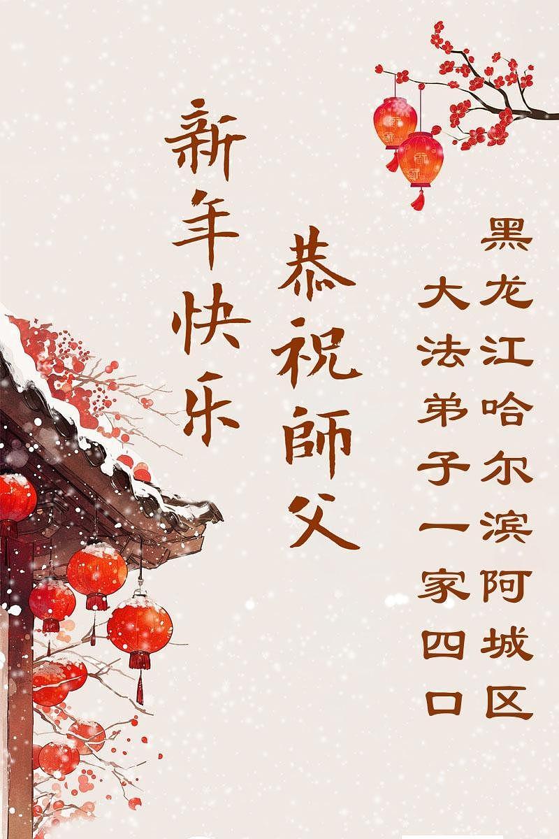 Falun Dafa praktikanti u gradu Harbinu s poštovanjem žele Učitelju Li Hongdžiju srećnu kinesku Novu godinu (104 čestitke)
