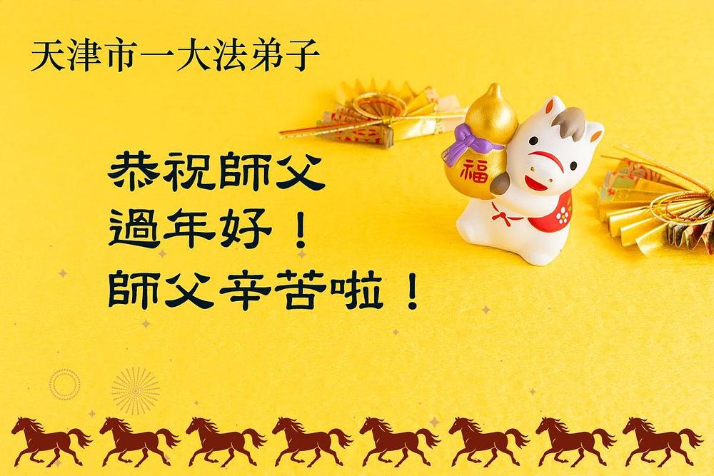 Falun Dafa praktikanti u Tjenđinu i Šangaju s poštovanjem žele Učitelju Li Hongdžiju srećnu kinesku Novu godinu (63 čestitke)