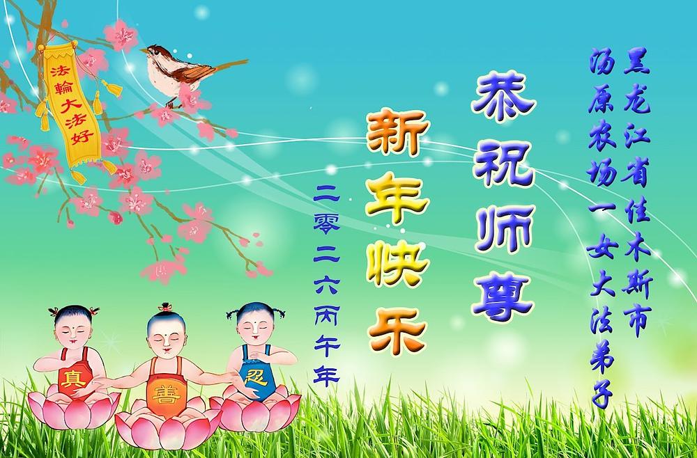 Falun Dafa praktikanti u provinciji Hejlungđang s poštovanjem žele učitelju Li Hongdžiju srećnu kinesku Novu godinu (162 čestitke)