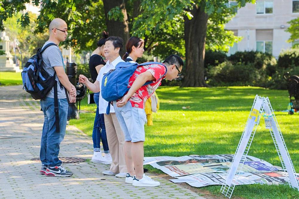 Za veliki broj putnika koji dolaze iz Kine ovo je prvi put da mogu razgovarati s praktikantima Falun Gonga otkako je počeo progon u Kini. Kada saznaju za brutalnost progona, veliki se broj njih odlučuje povući svoje članstvo u Komunističkoj partiji.