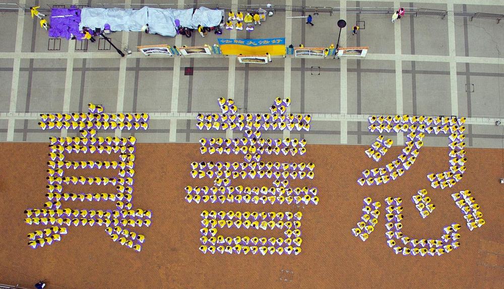 Falun Gong praktikanti su 16. siječnja formirali kineske znakove „Istinitost, Dobrodušnost, Tolerancija" na Trgu Edinburgh. Ovo je treći put da su praktikanti organizirali formiranje kineskih znakova u Hong Kongu; prvi puta su to učinili u siječnju 2001. godine.