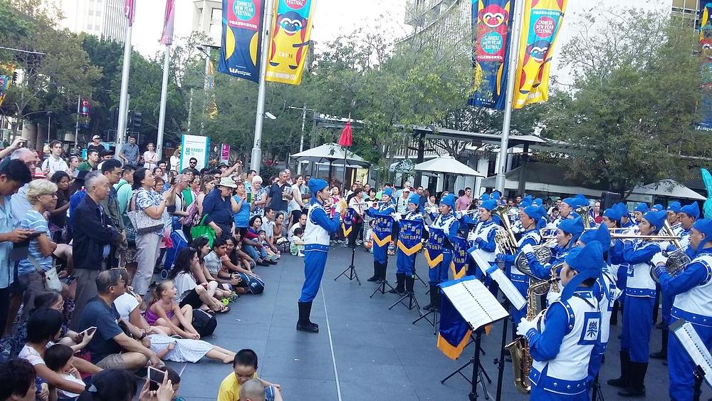 Divine Land Marching Band iz sidnejske grupe Falun Gonga je ponudio nadahnutu izvedbu na proslavi Kineske Nove godine u centru Sidneja u predvečerje 10. i 13. februara.