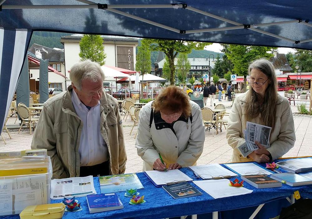 Na jezeru Titi u Njemačkoj Crnoj šumi, 2. jula 2016. godine su praktikanti javnosti predstavljali ovu meditacijsku praksu i govorili o brutalnom progonu Falun Gonga u Kini u organizaciji komunističkog režima. Praktikanti su također, ovom prilikom, prikupljali potpise protiv progona.