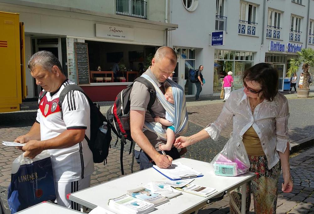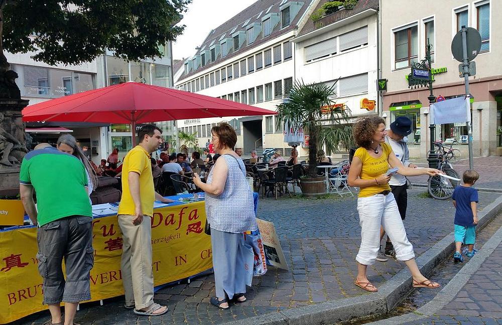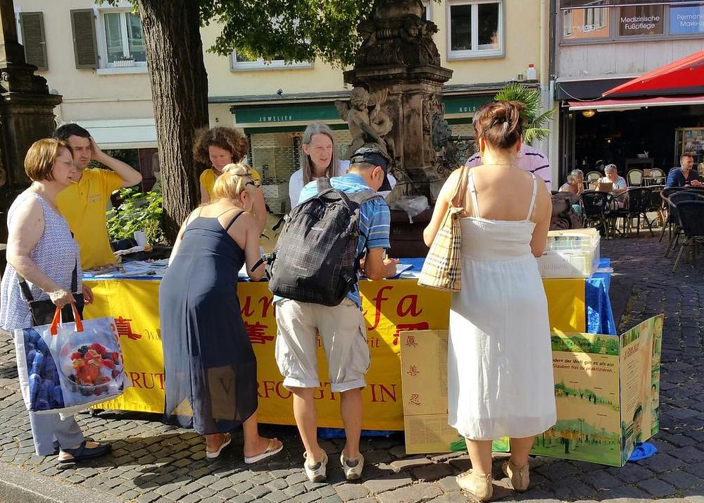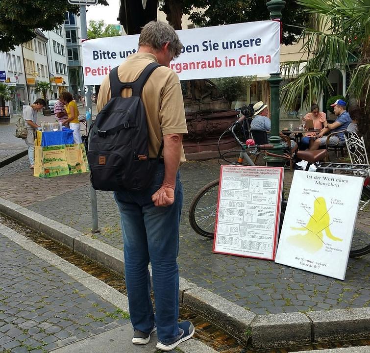 Praktikanti Falun Dafa su organizovali štand za potpisivanje peticije 9. jula u Frajburgu, univerzitetskom gradu u oblasti Švarcvalda, kako bi podizali nivo svijesti o prisilnoj žetvi organa uzimanih od zatvorenika savjesti u Kini, od kojih najveći broj čine Falun Dafa praktikanti, a koja se izvodi u organizaciji kineske države.