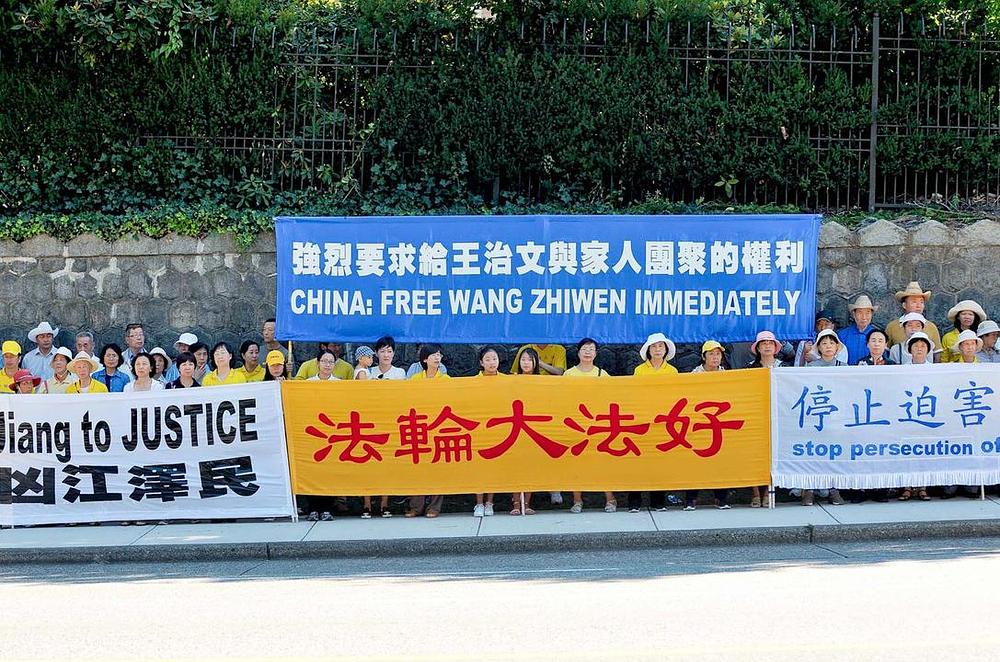 Kada su saznali da je nekadašnjem koordinatoru Falun Gong istraživačke asocijacije, Wang Zhiwenu, zabranjeno putovanje van granica Kine kako bi se sastao sa svojom porodicom, praktikanti su organizovali skupove u Vankuveru, Los Anđelesu i Sent Luisu, na kojima su pozvali kinesku vladu da riješi ovaj problem.