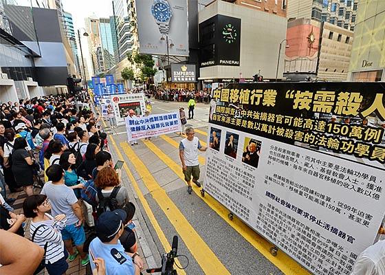 Nakon skupa ispred vladinog kompleksa u Hong Kongu, praktikanti su održali marš koji je trajao dva i po sata od Kowloona do Tsim Sha Tsuija.