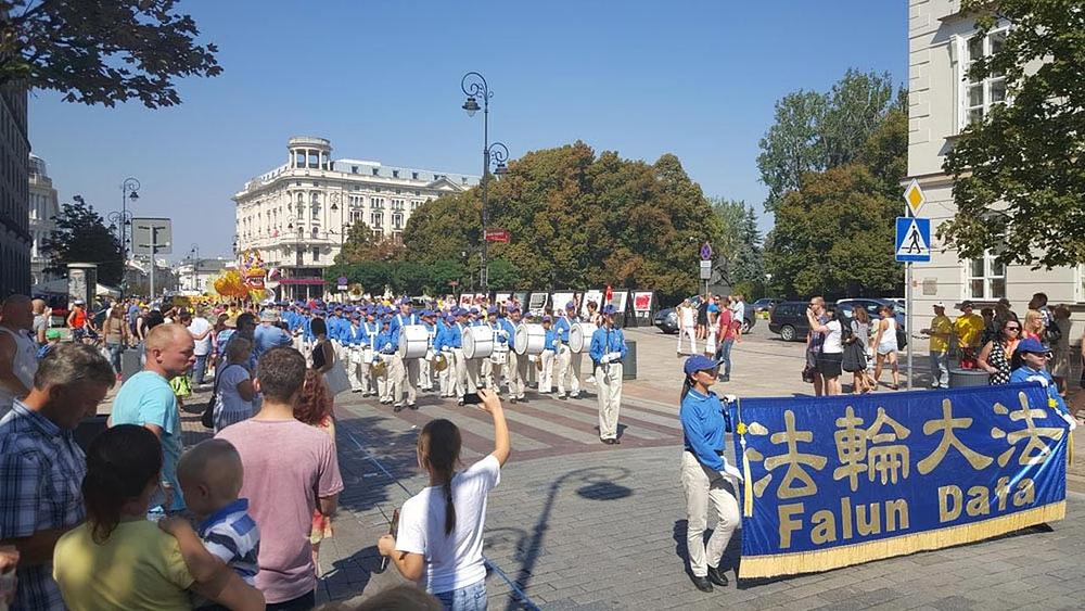 Paradom na 10. Festivalu multikulture u Varšavi, u Poljskoj, 28. avgusta 2016. godine, praktikanti su demonstrirali ljepotu Falun Gonga gledaocima.