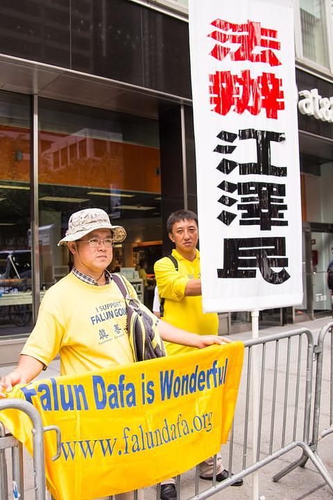 Za vrijeme njegove nedavne posjete New Yorku, kineskog premijera Li Keqianga su dočekali miroljubivi protesti praktikanata Falun Gonga, koji su pozivali da se bivši vođa Komunističke partije Kine izvede pred lice pravde. Jiang Zemin je odgovoran za organizovanje i podržavanje devastirajućeg progona Falun Gonga koji traje već 17 godina. (Falun Gong je drevna praksa kultivacije bazirana na principima Istinitosti-Dobrodušnosti-Tolerancije.)