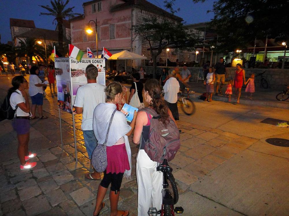 Informativni dani su održavani u ranim večernjim satima kada je na šetnicama Brača i Hvara bio veliki broj ljudi. Praktikanti su dijelili letke na raznim jezicima i pričali s brojnim turistima o kultiviranju u Falun Dafa kao i o progonu u Kini.